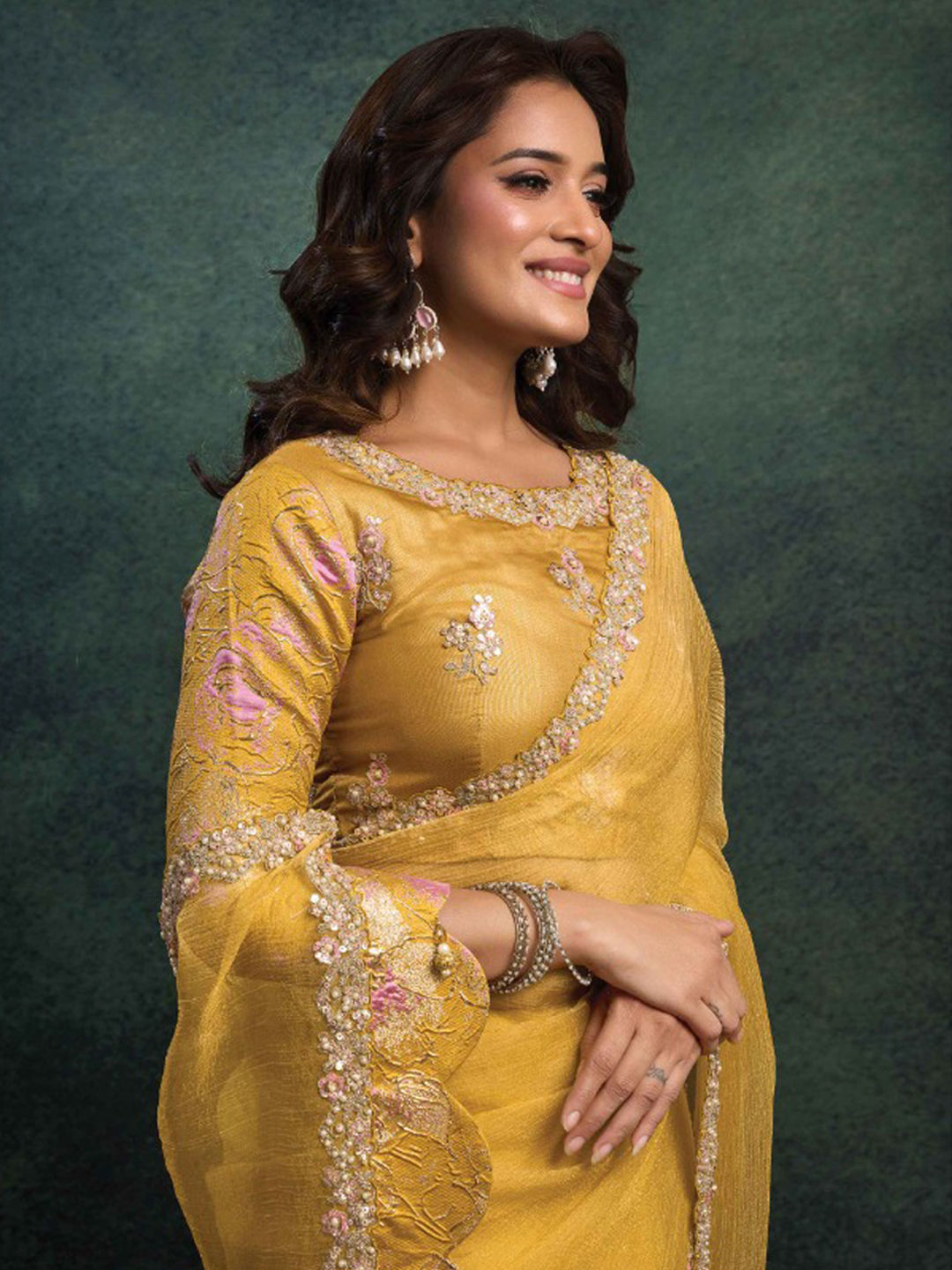 in Yellow with Embroidered work