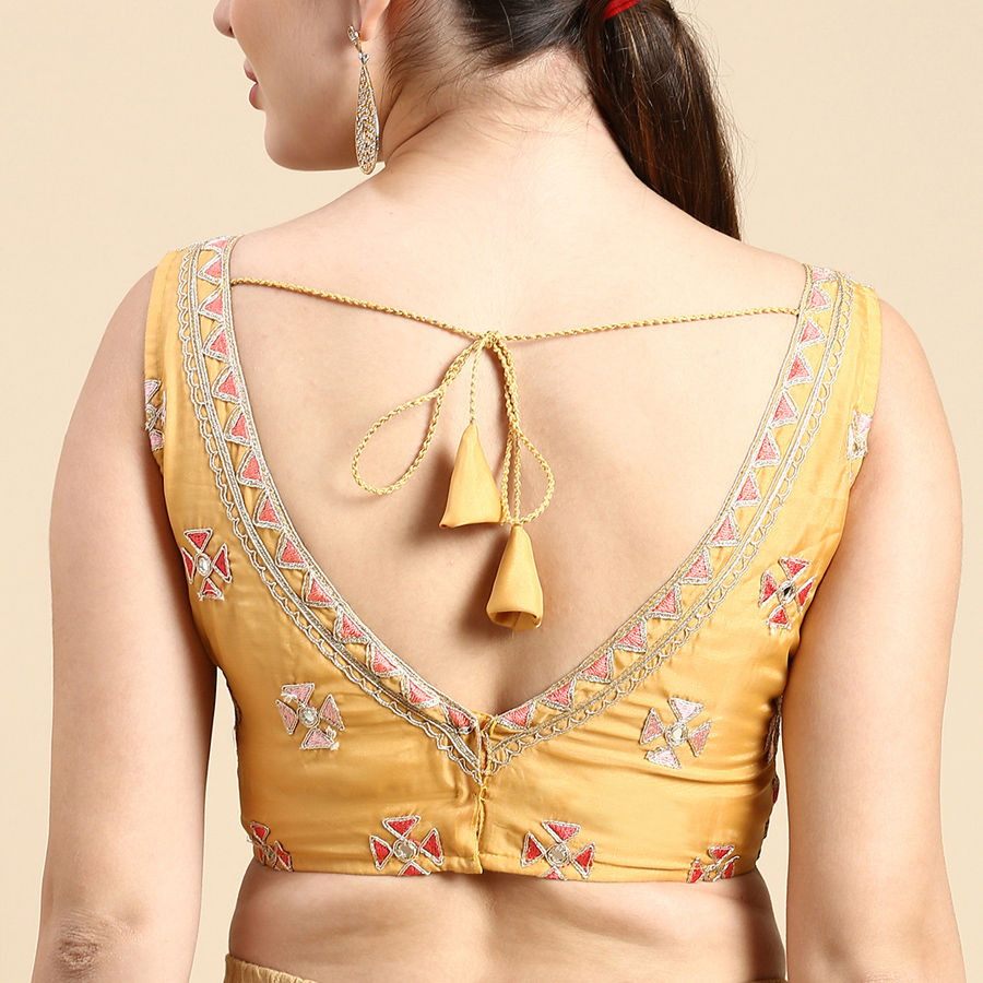 Yellow color Blouse in Organza Silk fabric with Embroidered, Thread work