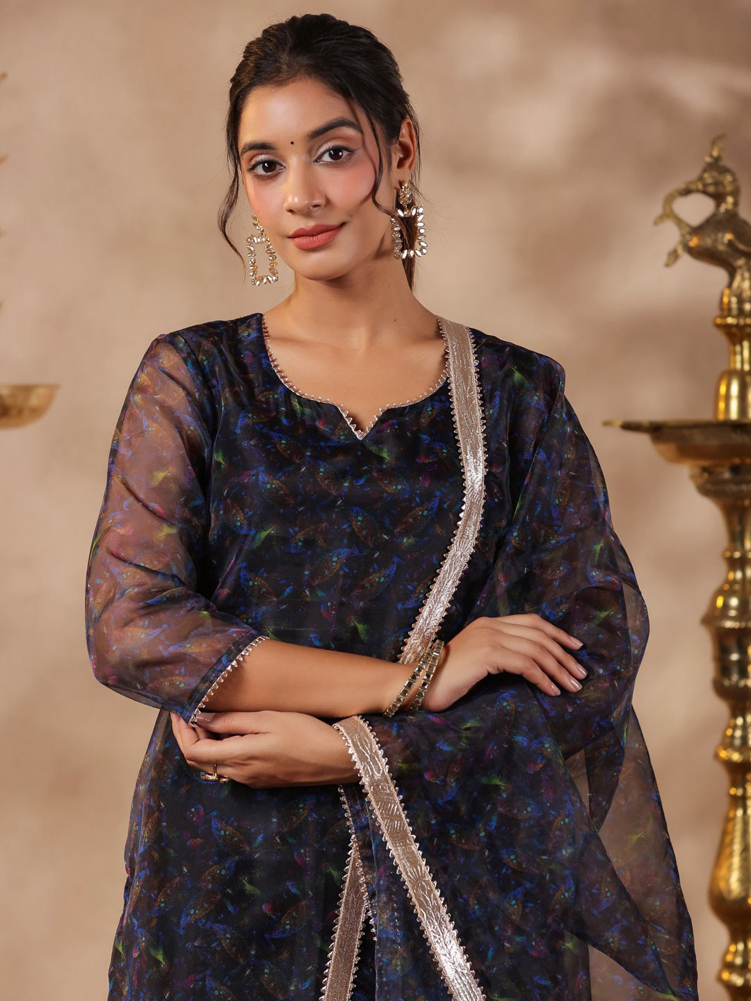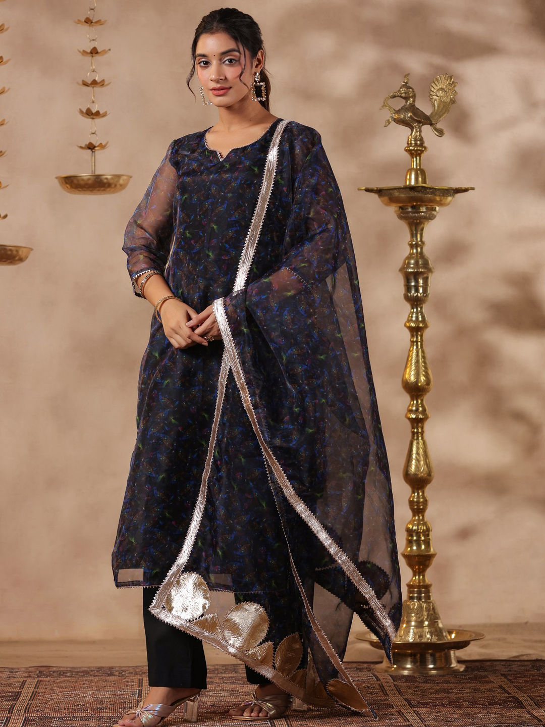 Black and Grey color Salwar Kameez in Organza Silk fabric with Printed work