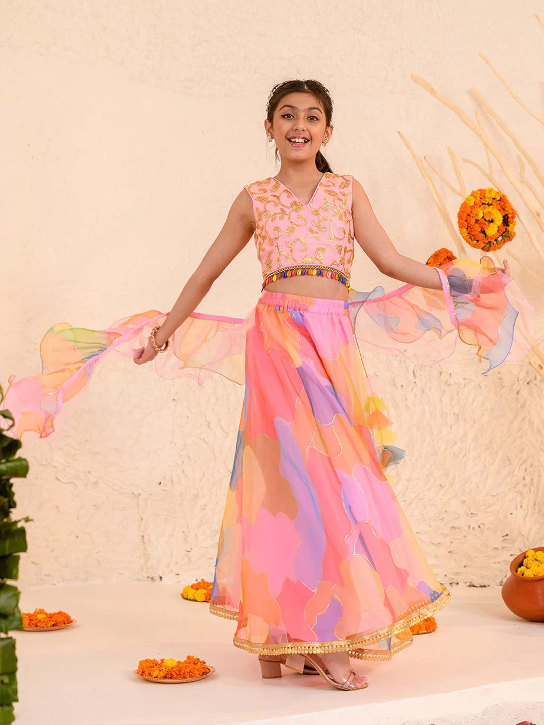 Organza Silk Festive Kids Lehenga