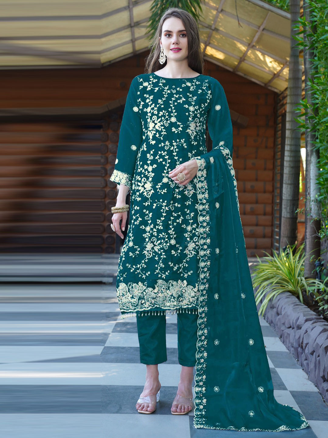 Blue color Salwar Kameez in Organza Silk fabric with Embroidered, Sequence work