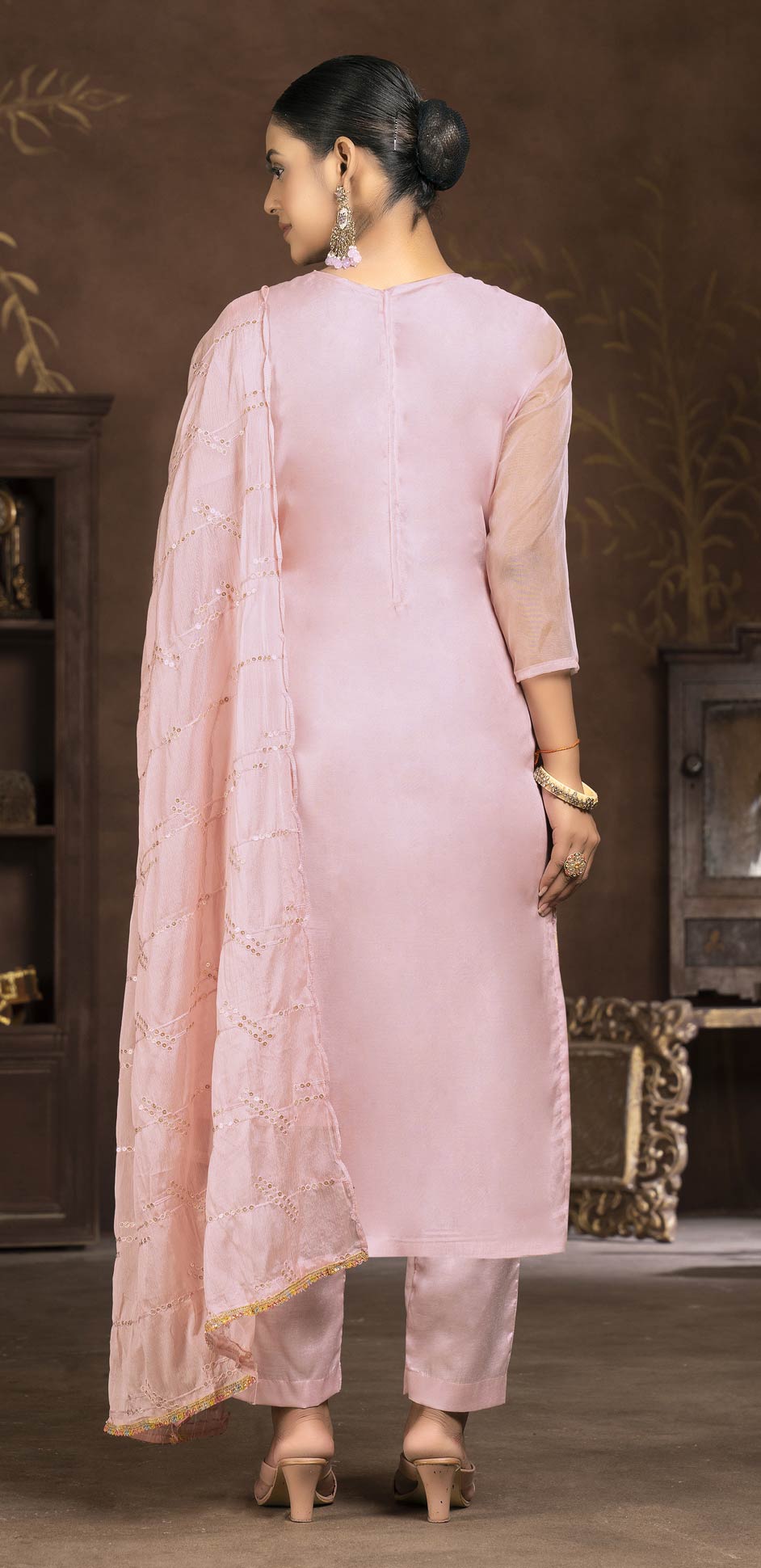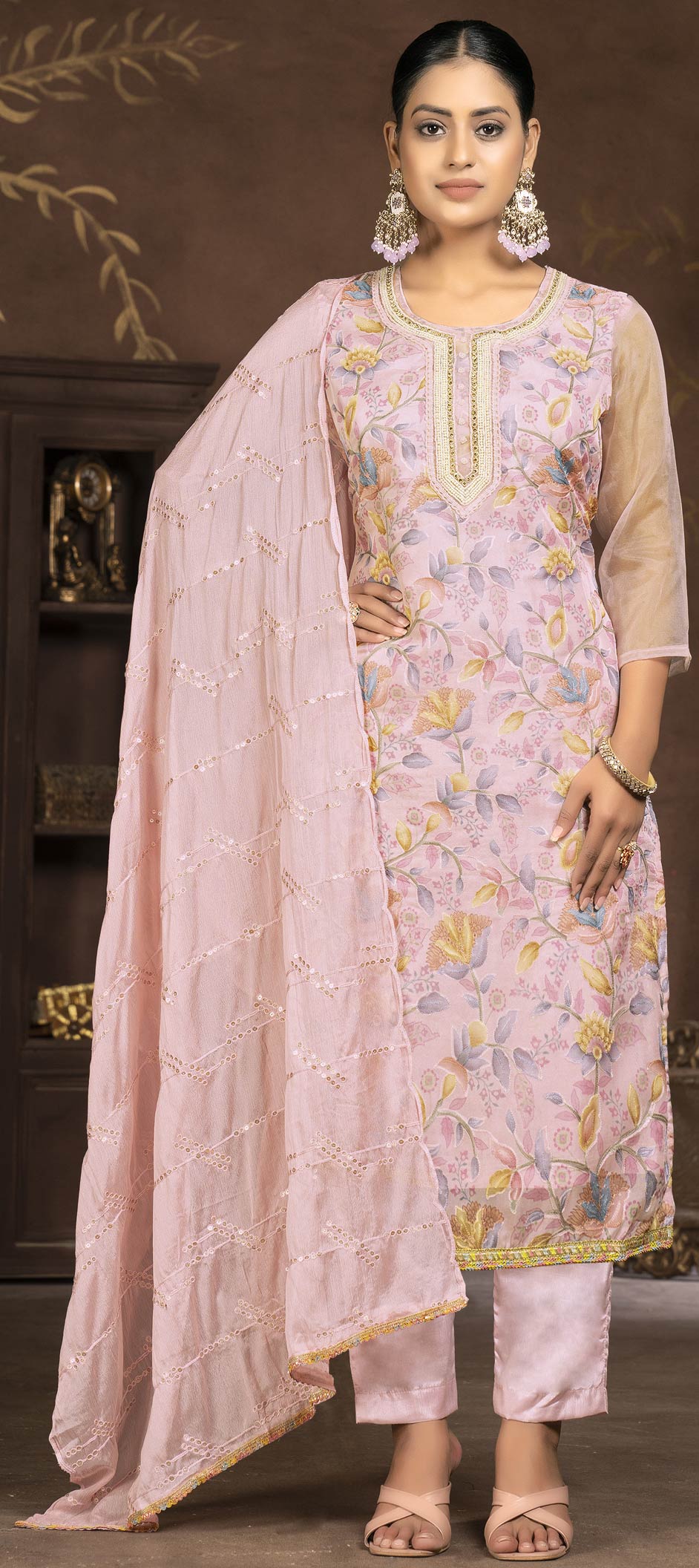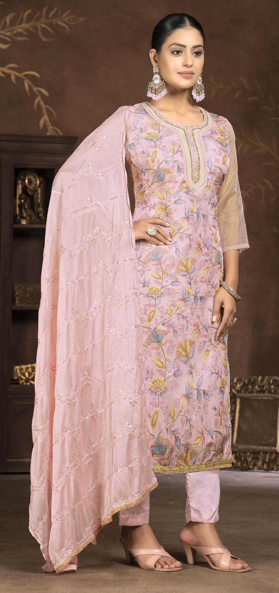 Pink and Majenta color Salwar Kameez in Organza Silk fabric with Embroidered, Printed, Thread work