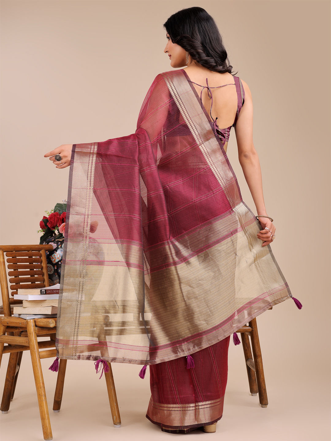 Pink and Majenta color Saree in Organza Silk fabric with Weaving, Zari work
