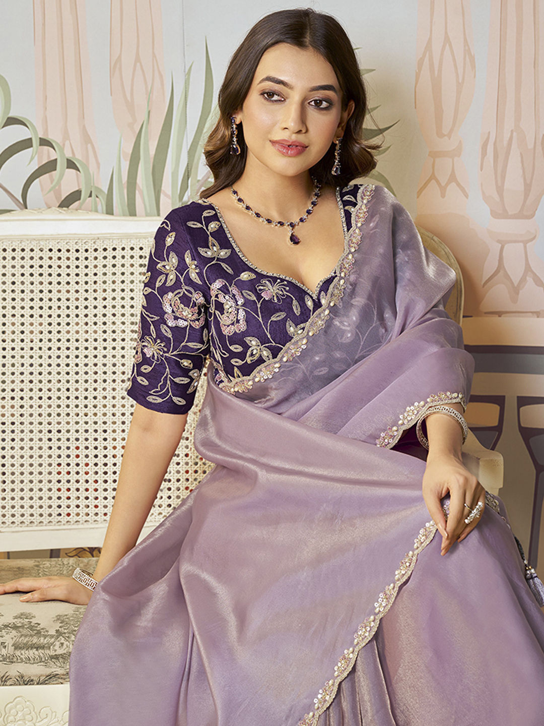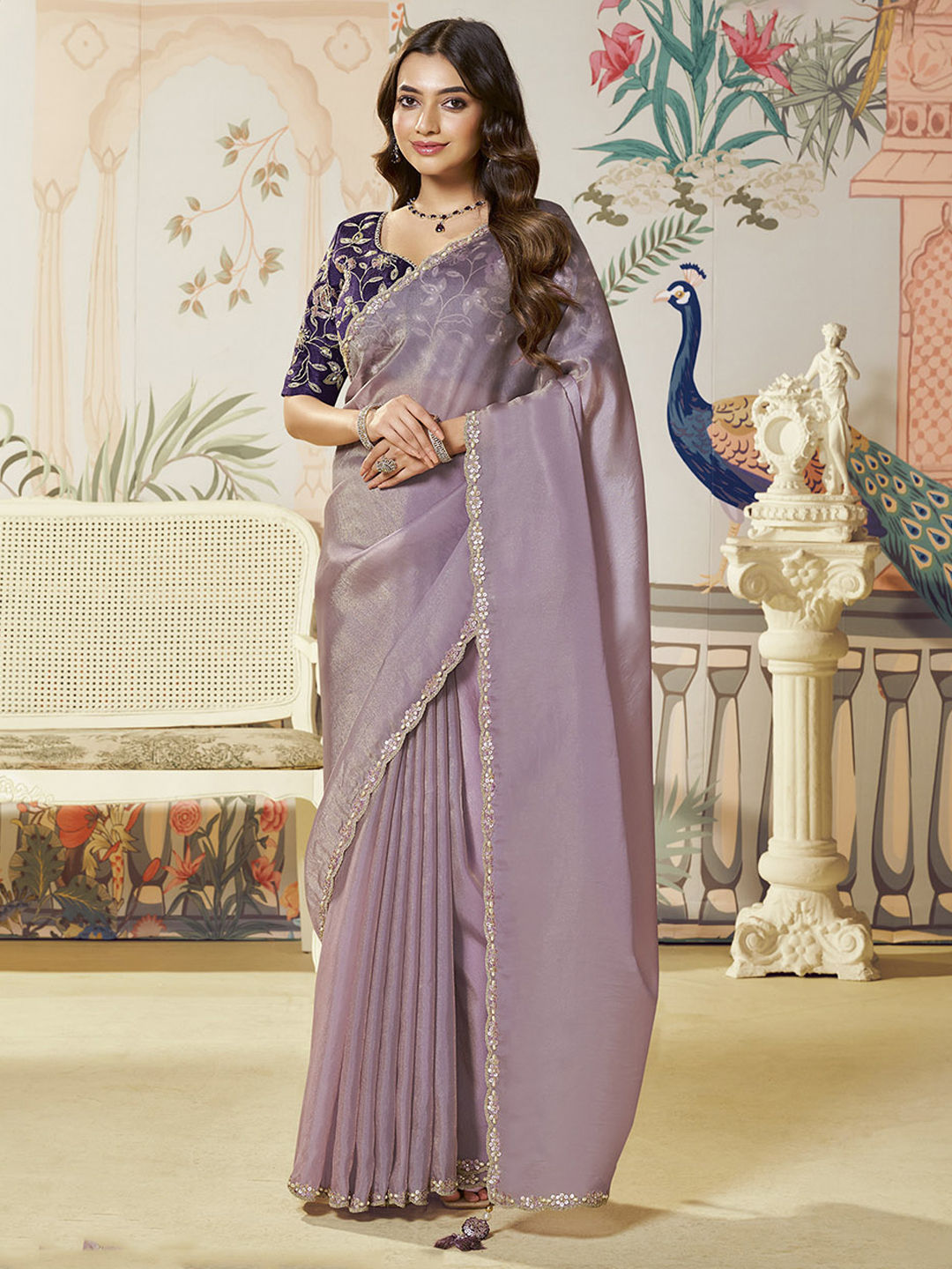 Purple and Violet color Saree in Organza Silk fabric with Embroidered, Sequence work