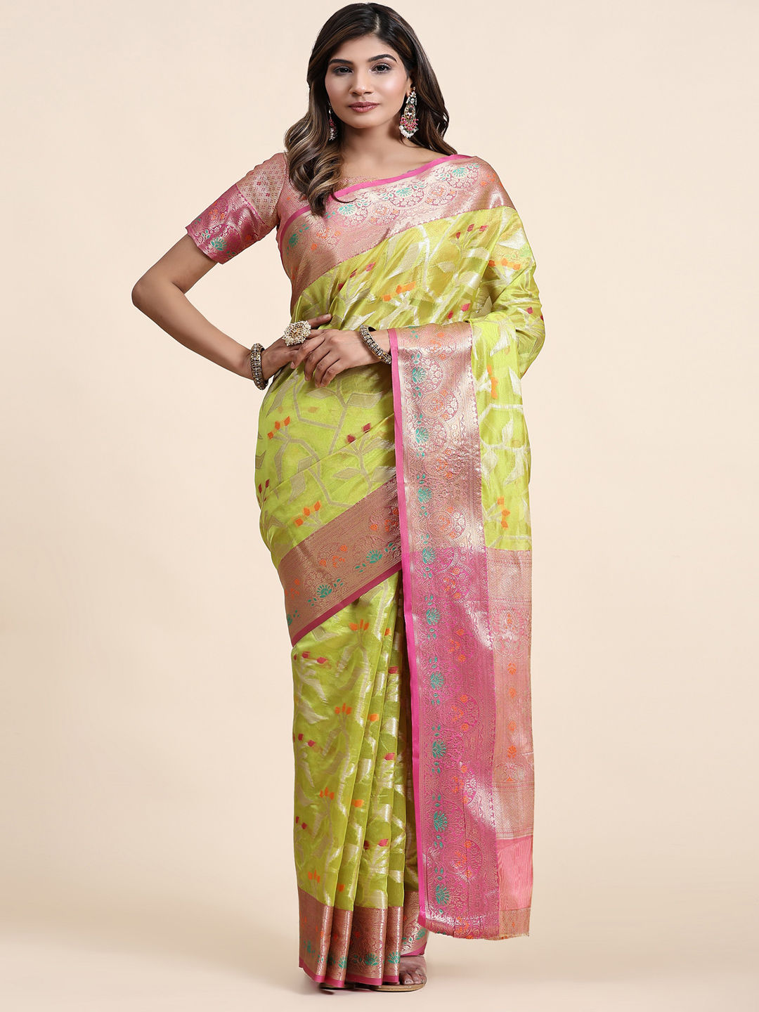 Yellow color Saree in Organza Silk fabric with Weaving work