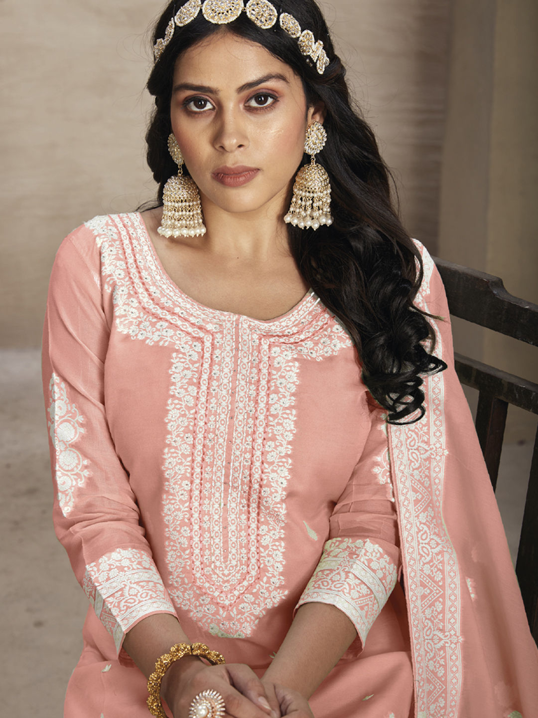 Organza Silk Party Wear Salwar Kameez in Pink and Majenta with Embroidered work