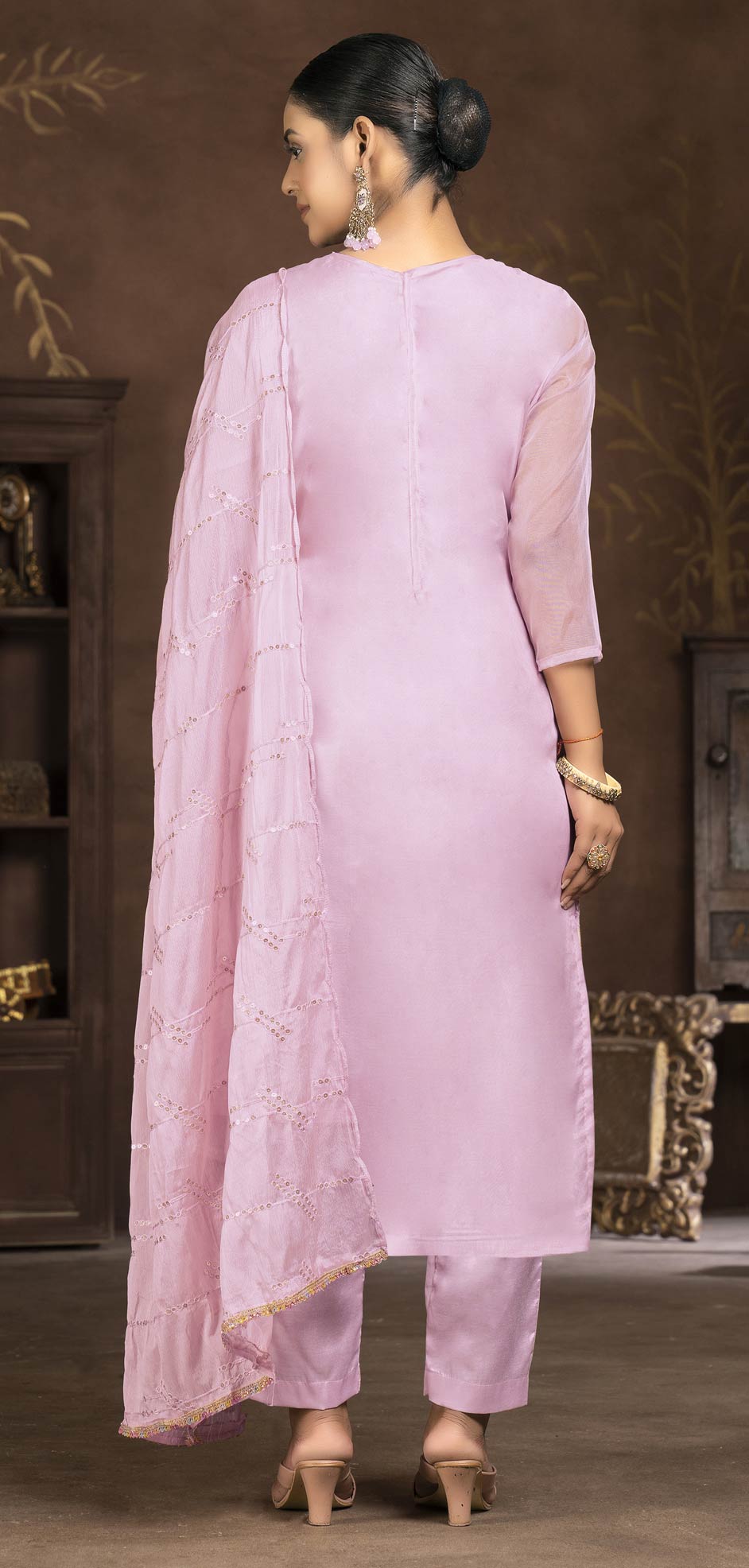 Organza Silk Festive Salwar Kameez in Pink and Majenta with Embroidered work