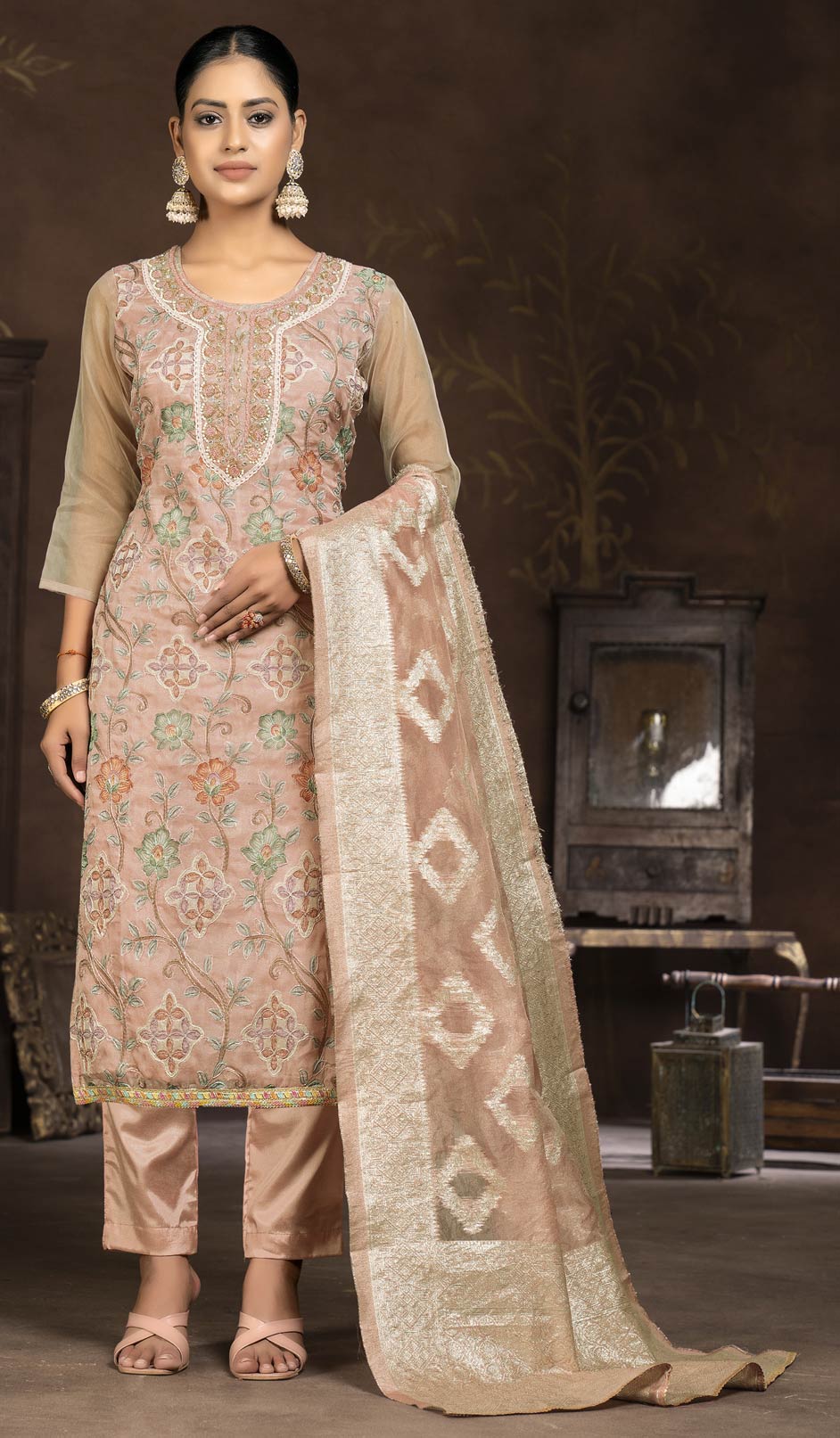 Organza Silk Festive Salwar Kameez in Pink and Majenta with Embroidered work