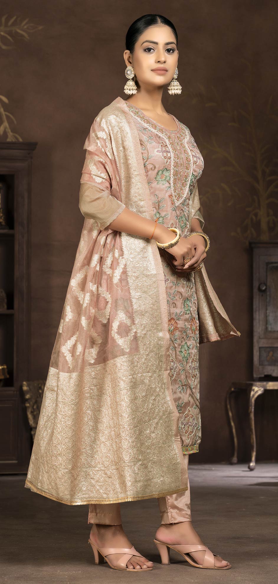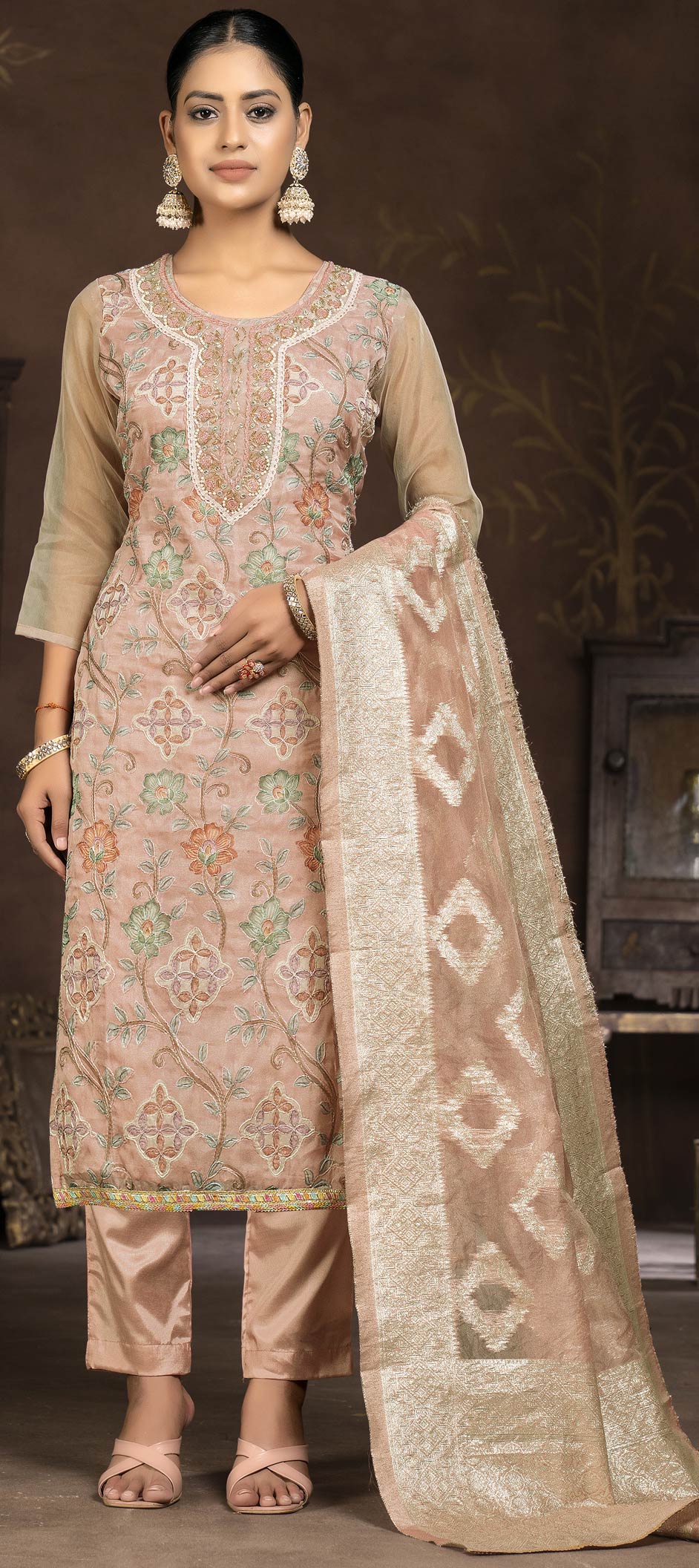 Pink and Majenta color Salwar Kameez in Organza Silk fabric with Embroidered, Printed, Thread work
