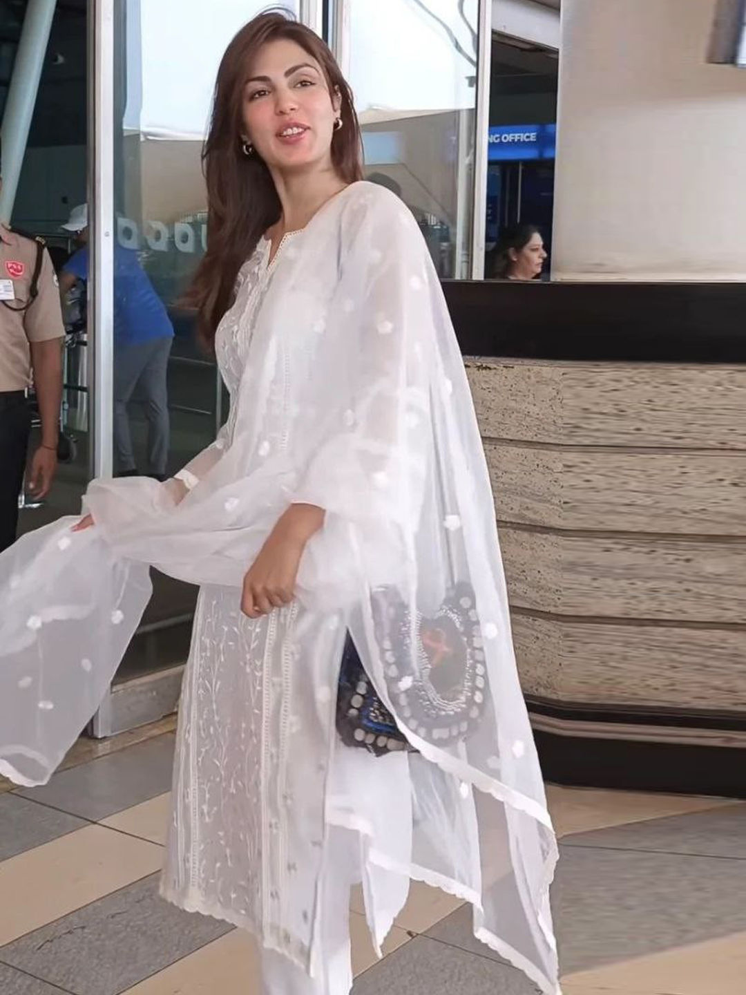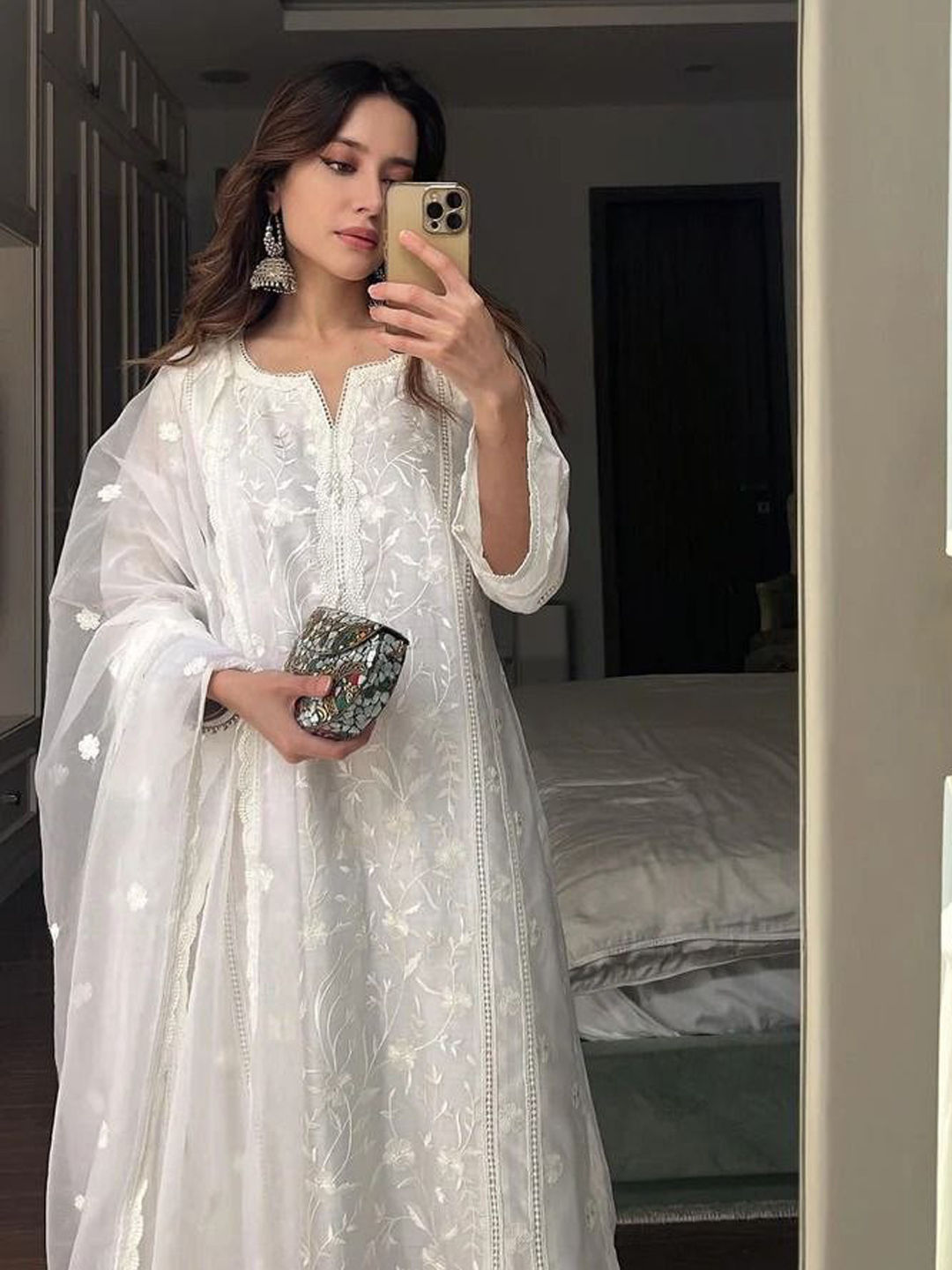White and Off White color Salwar Kameez in Organza Silk fabric with Embroidered, Lace work