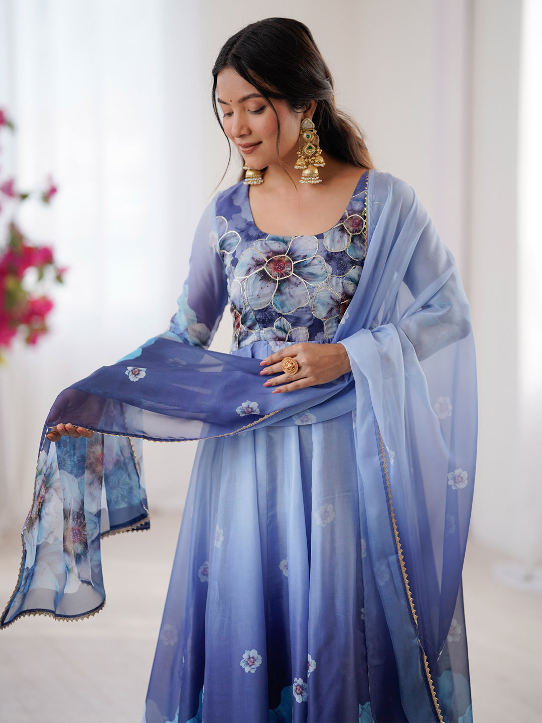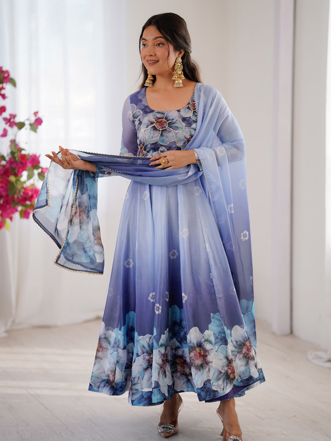 Multicolor color Salwar Kameez in Organza Silk fabric with Mirror work