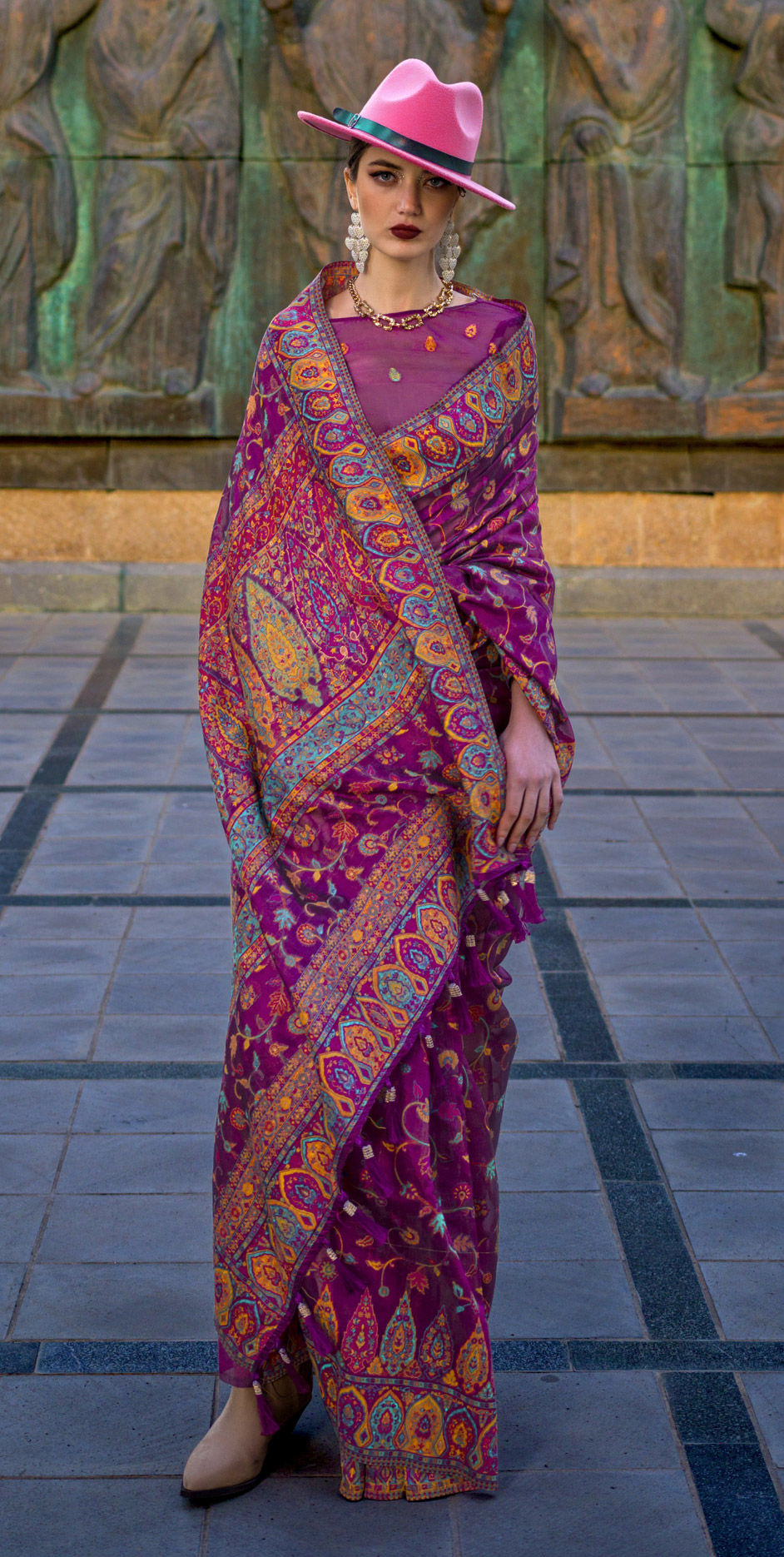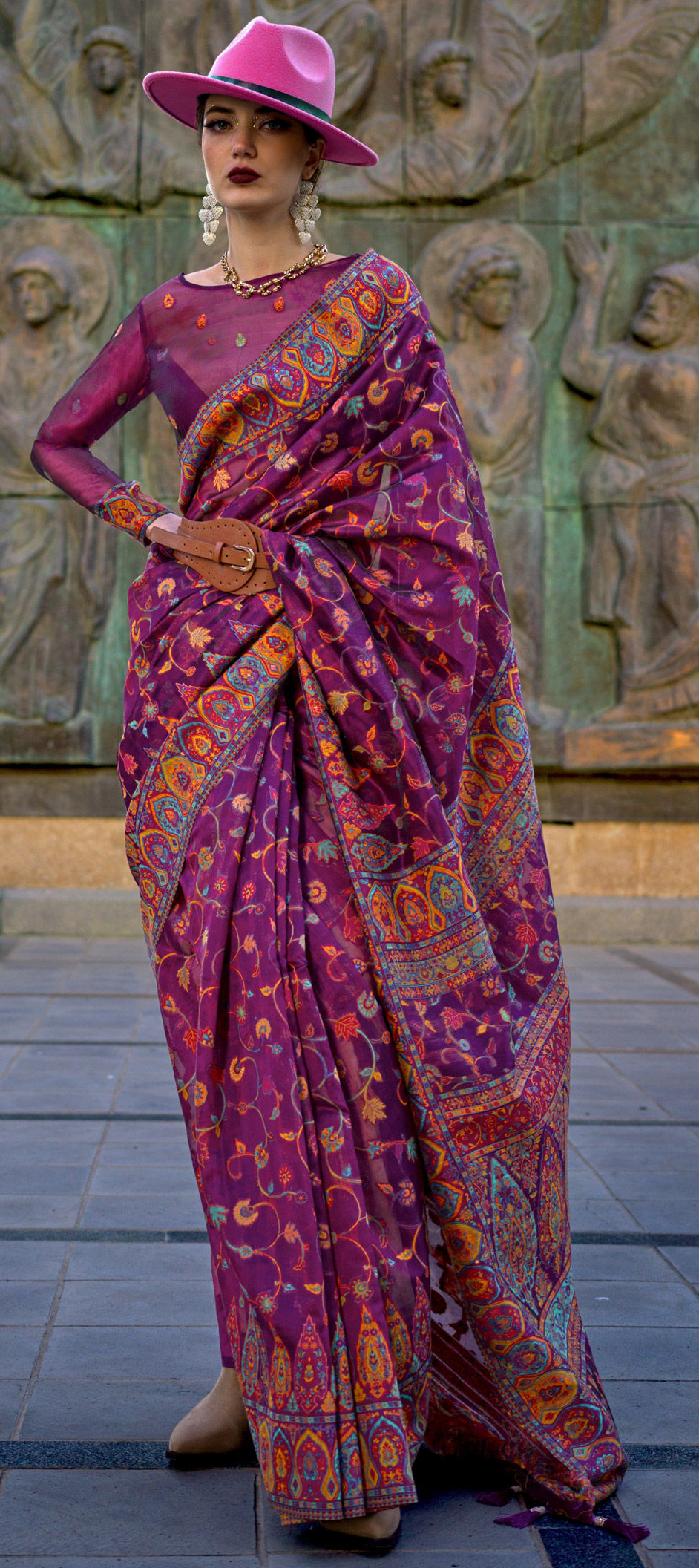 Pink and Majenta color Saree in Organza Silk fabric with Weaving work