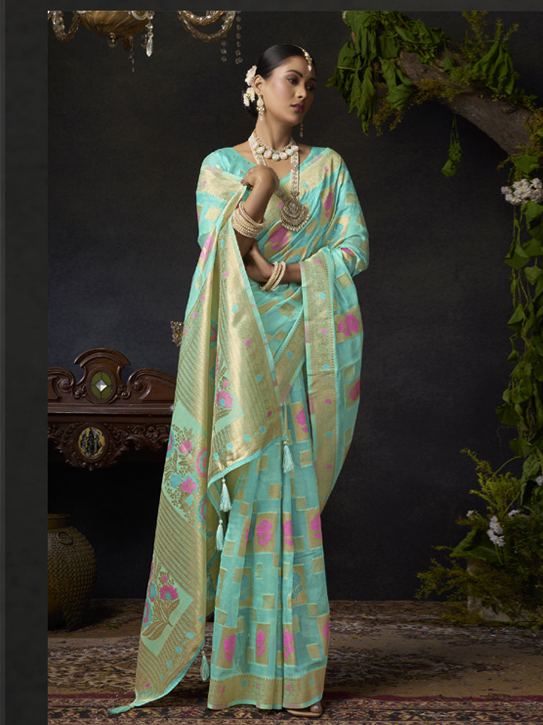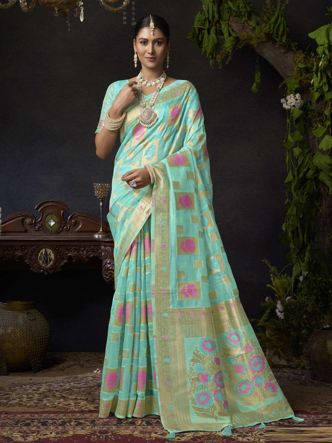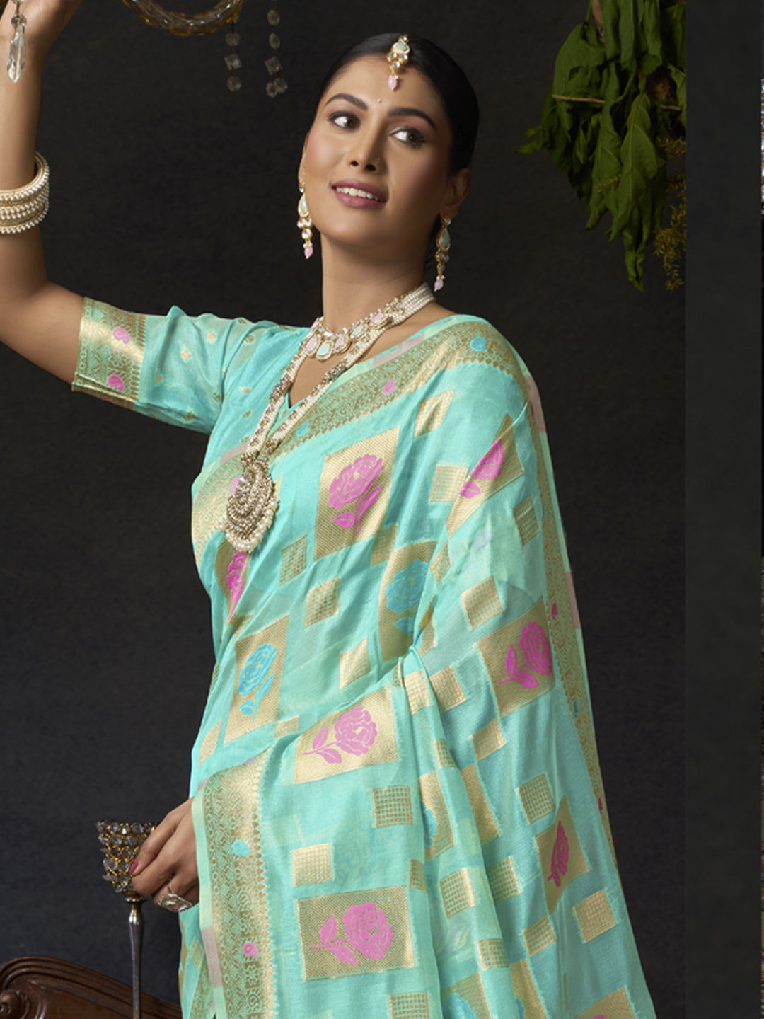 Blue color Saree in Organza Silk fabric with Weaving, Zari work