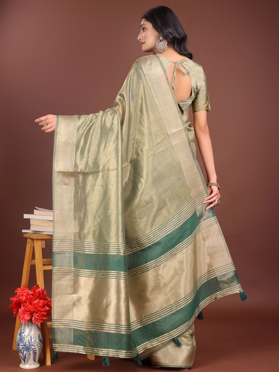 in Green with Weaving work