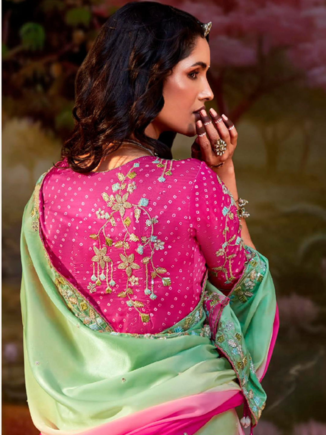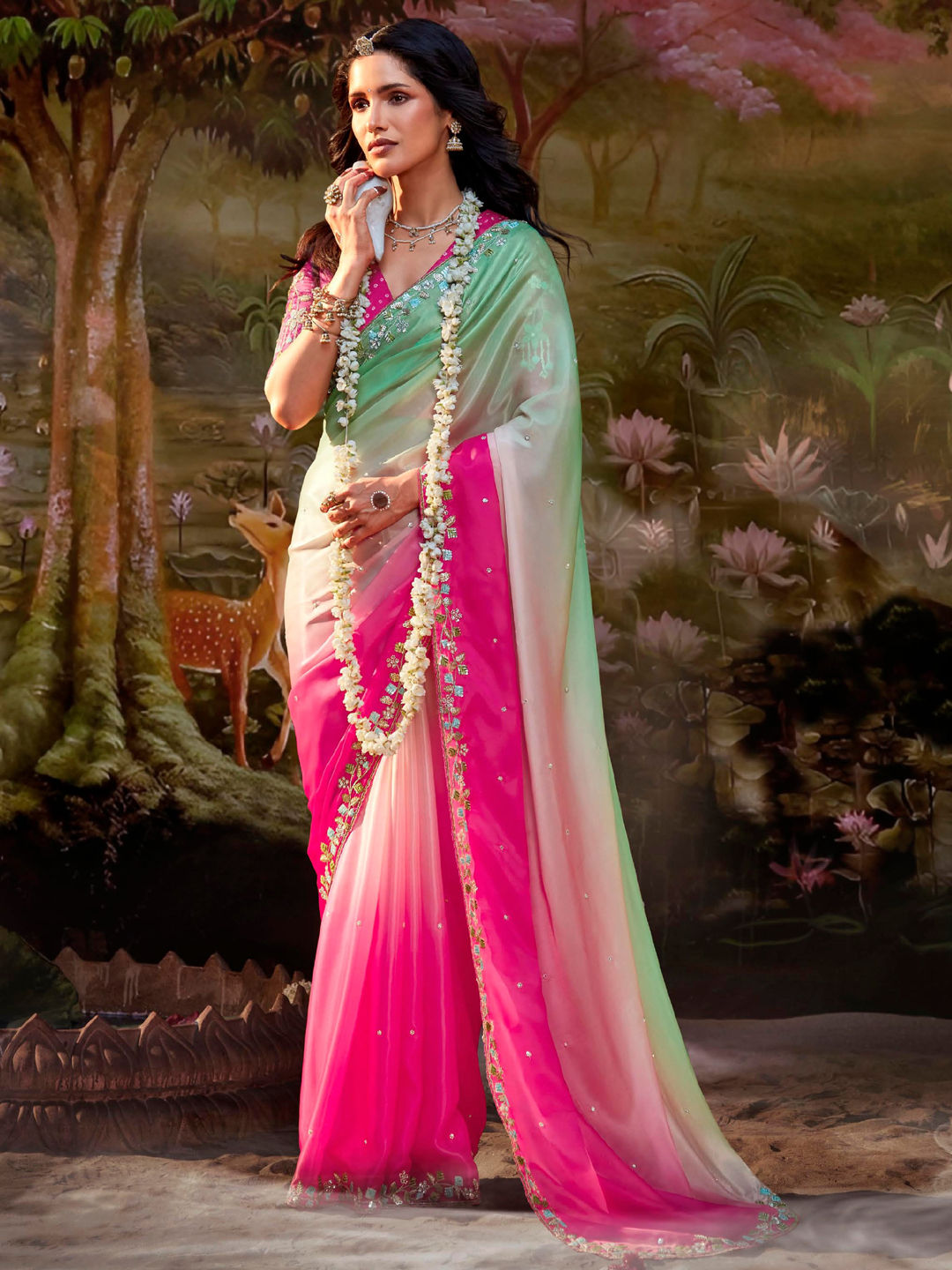 Organza Silk Bridal Saree in Pink and Majenta with Embroidered work
