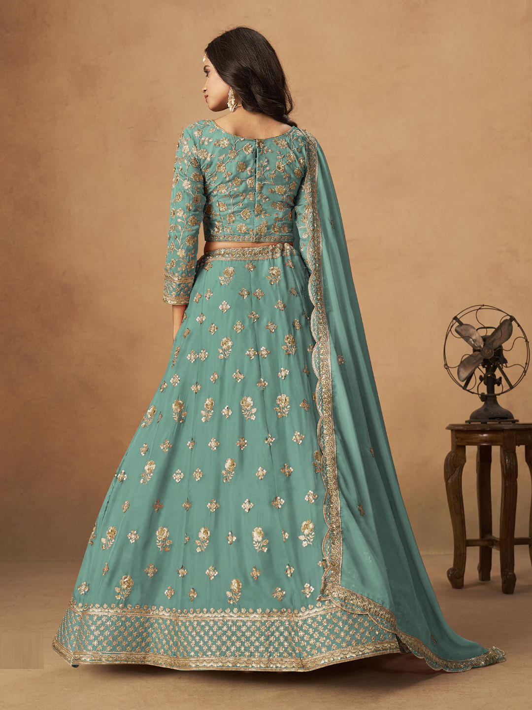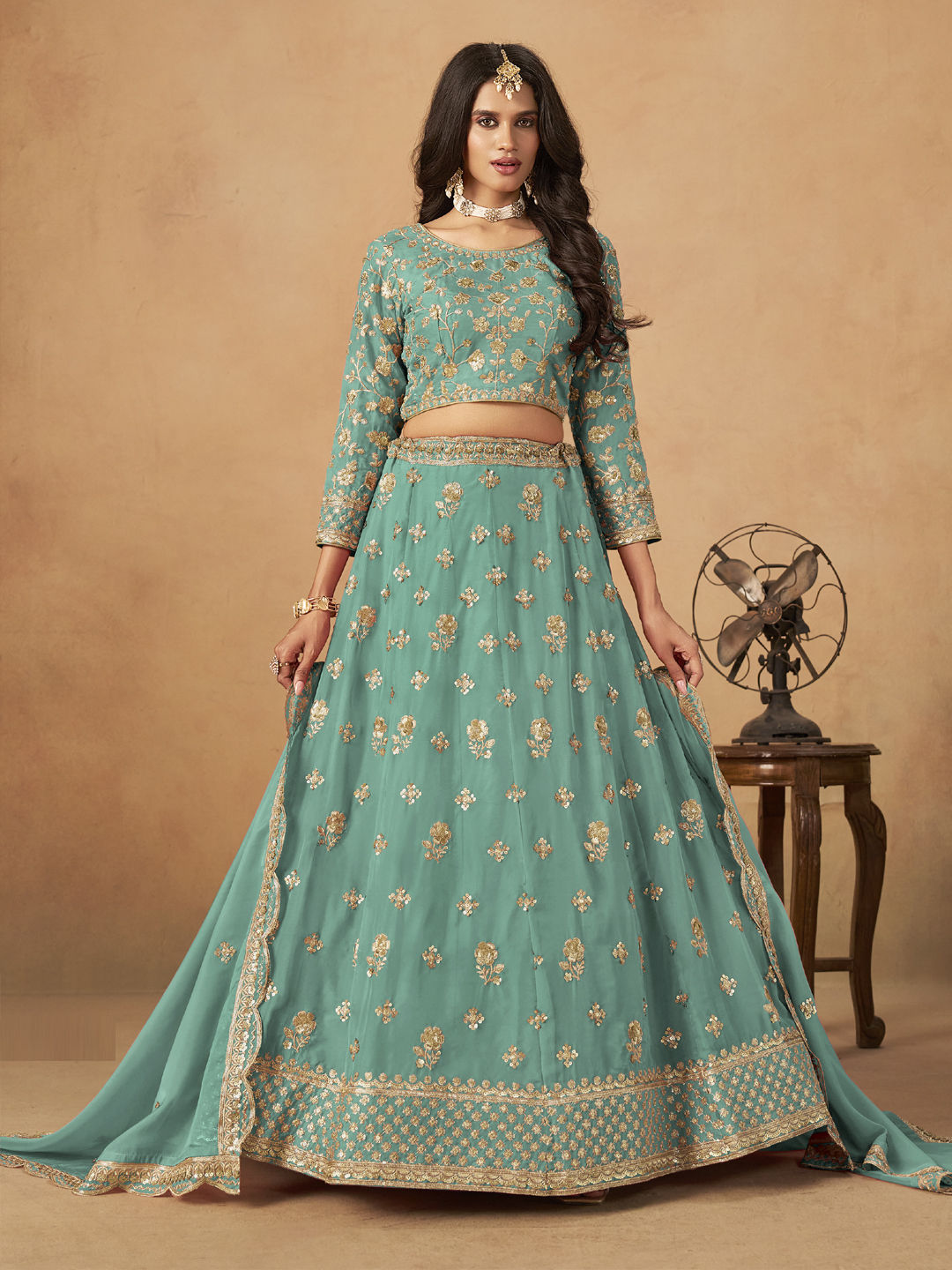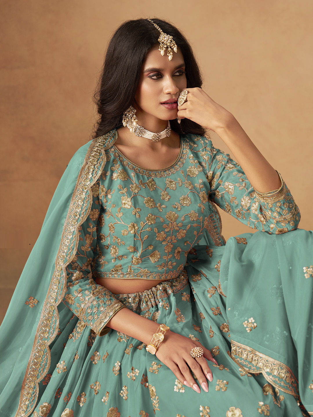 Green color Lehenga in Organza Silk fabric with Sequence work