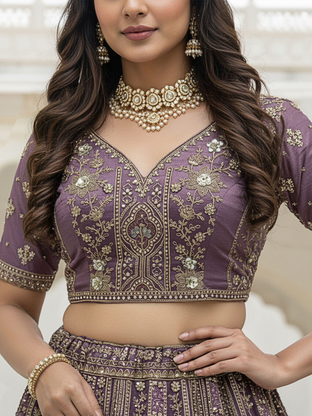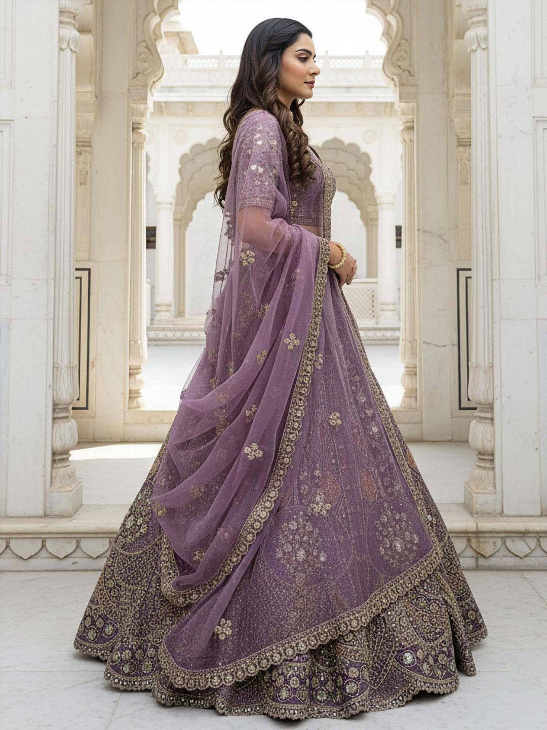 Purple and Violet color Lehenga in Organza Silk fabric with Embroidered, Sequence, Thread work