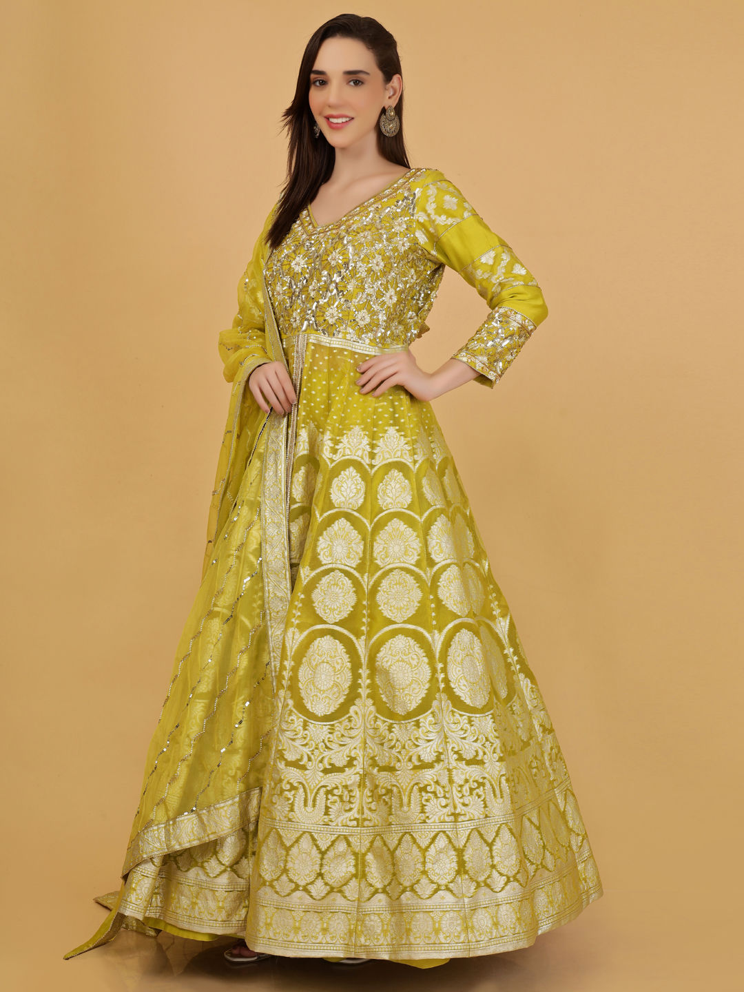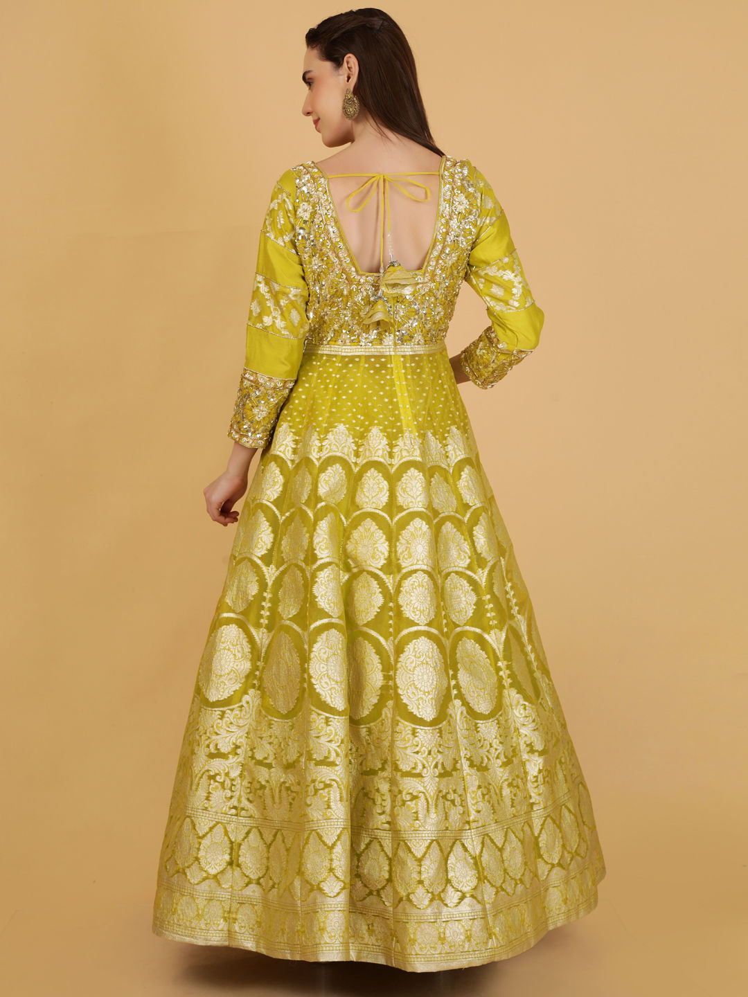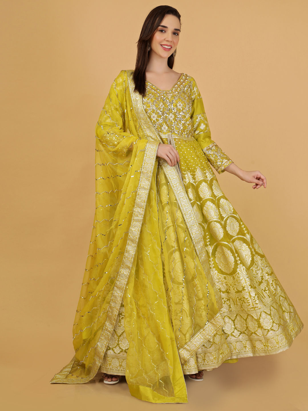 Green color Long Lehenga Choli in Organza Silk fabric with Bugle Beads, Embroidered, Sequence work