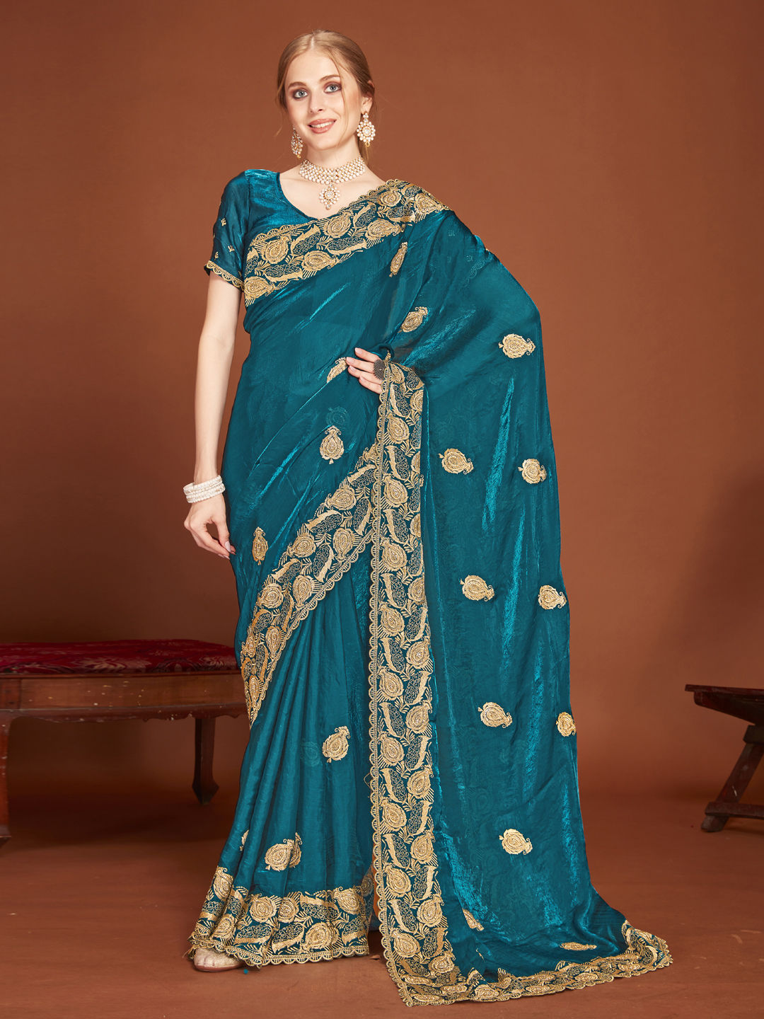Embroidered, Zari, Zircon