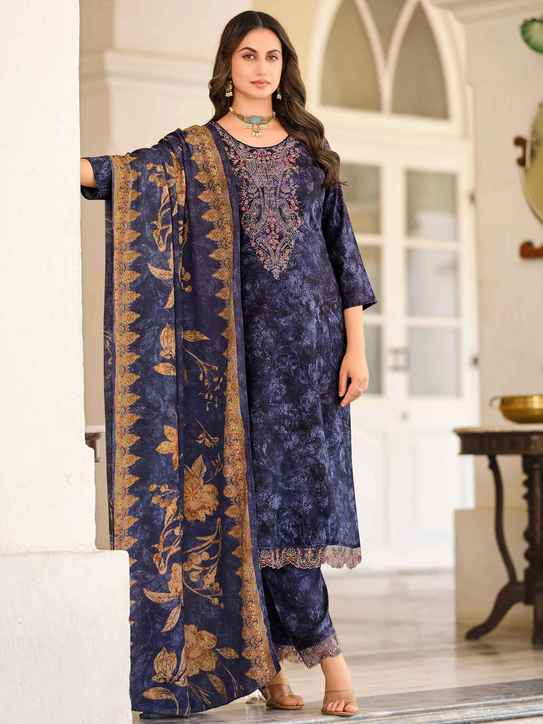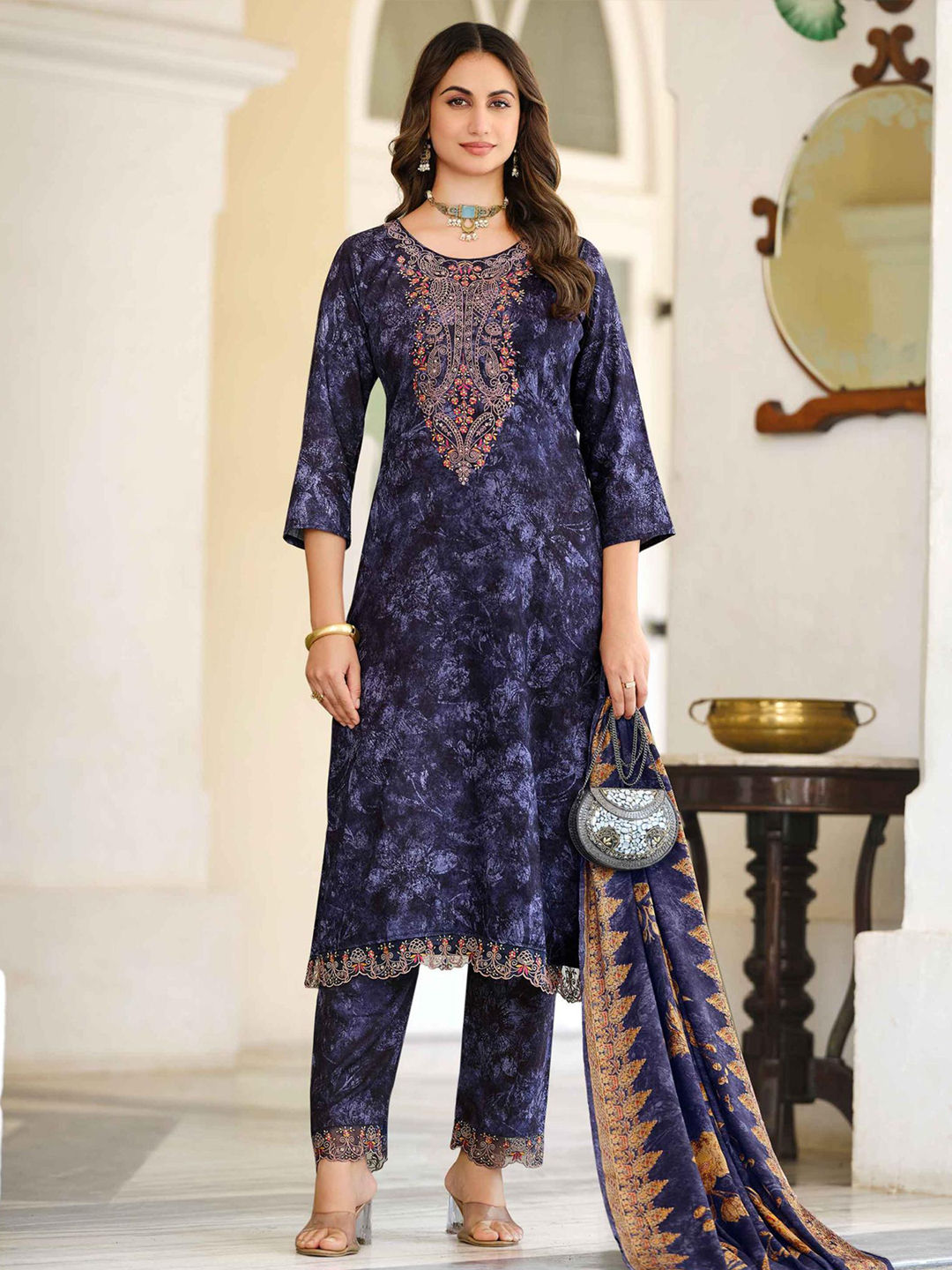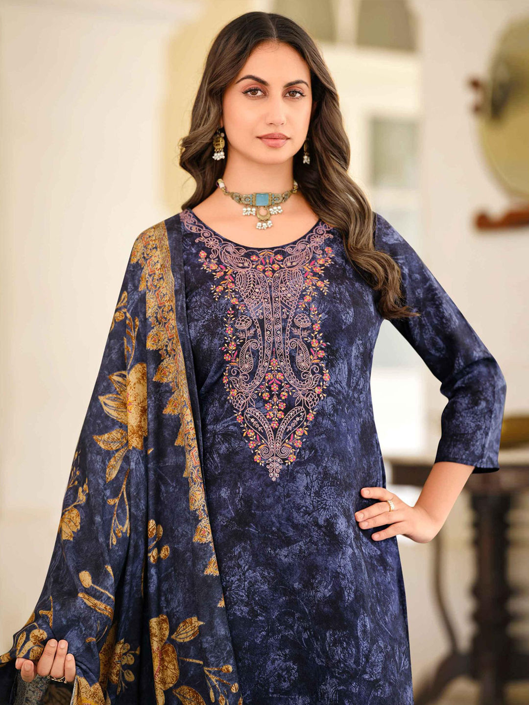 Blue color Salwar Kameez in Pashmina fabric with Embroidered work