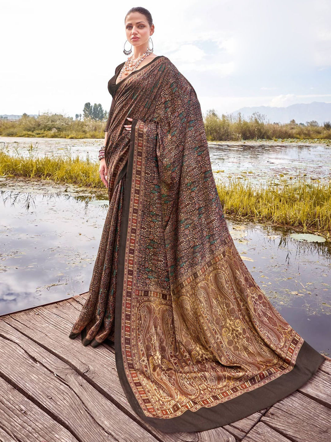 Pashmina Traditional Saree in Beige and Brown with Printed work