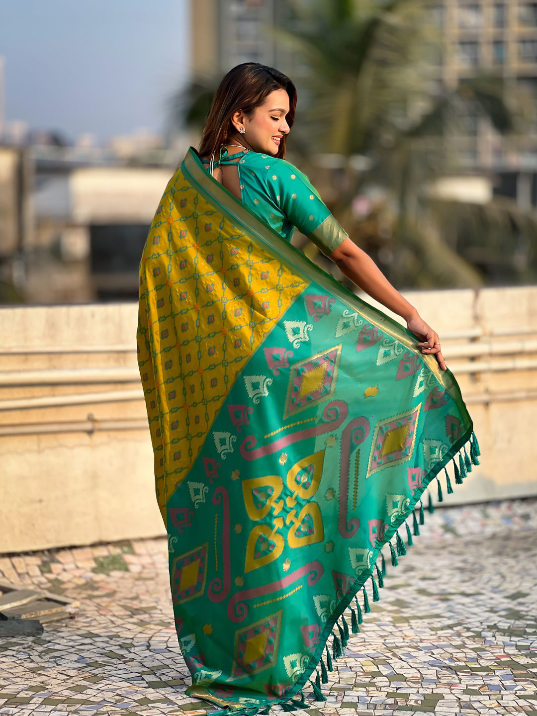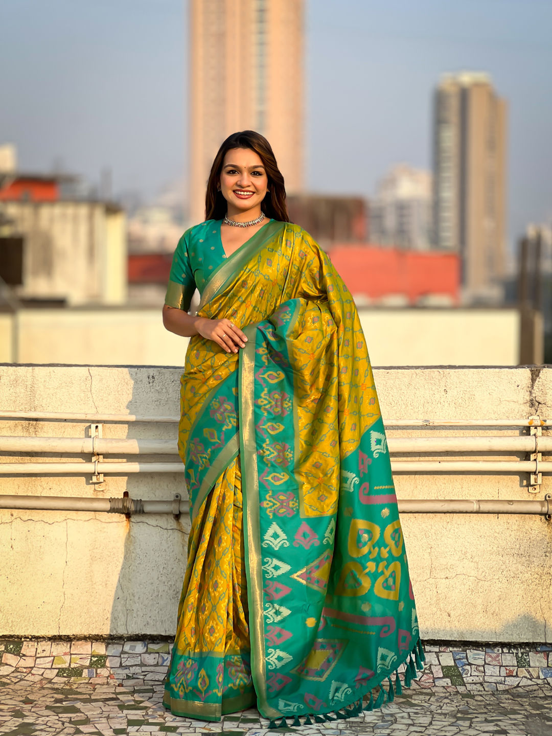 Green, Yellow color Saree in Patola Silk fabric with Weaving, Zari work