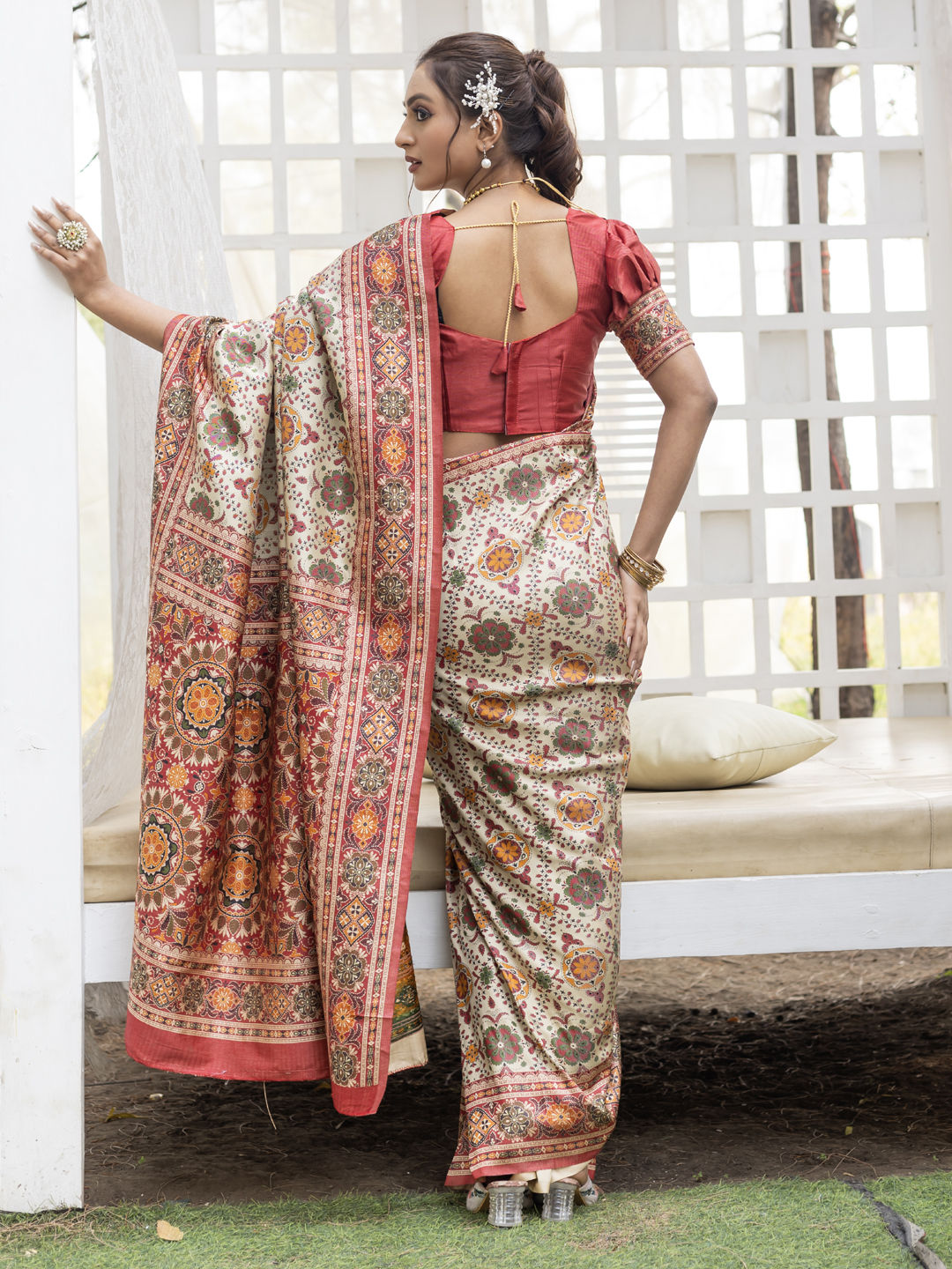 White and Off White color Saree in Patola Silk fabric with Weaving, Zari work