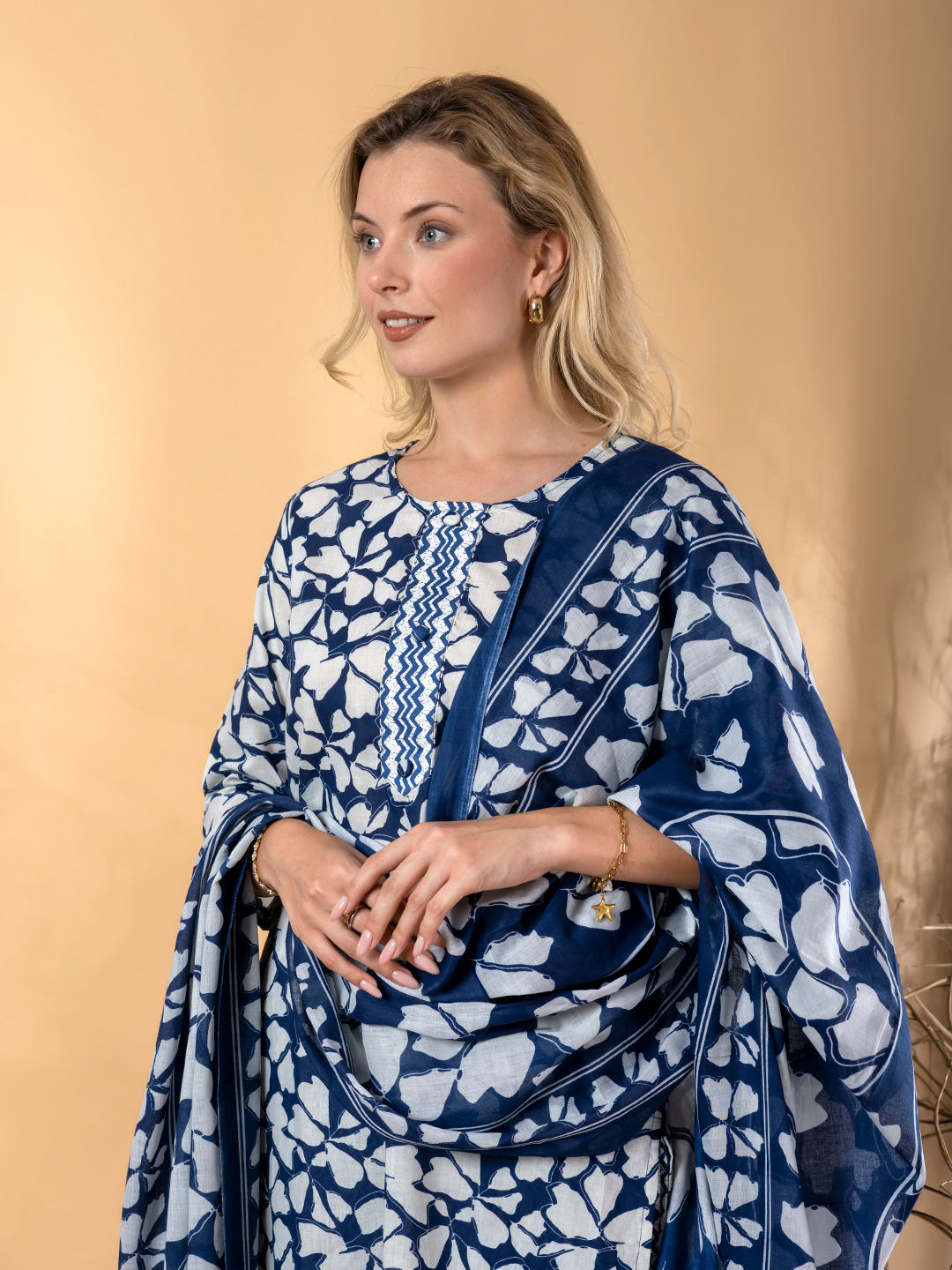 Cotton Festive Salwar Kameez in Blue with Printed work