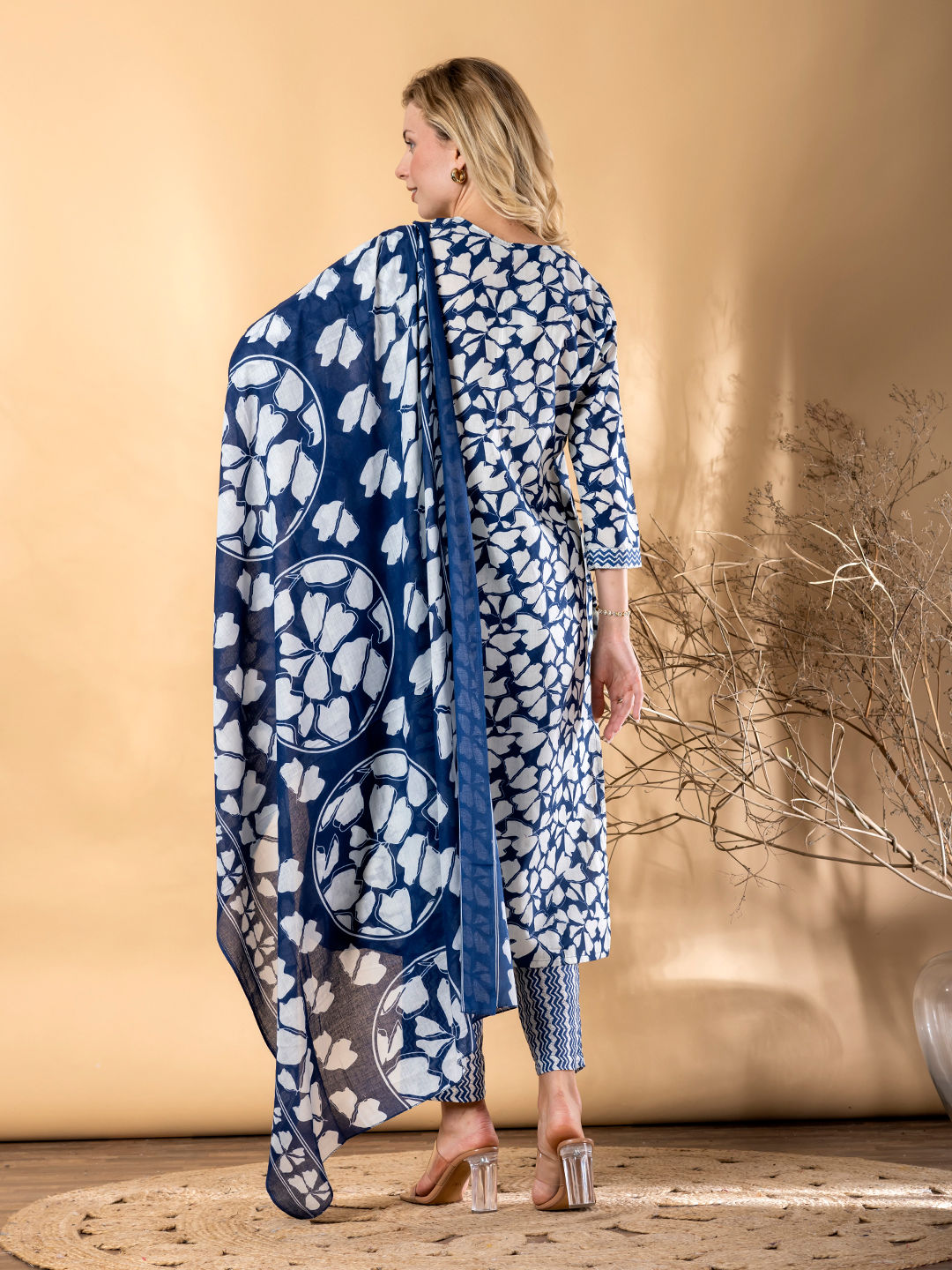 Blue, White and Off White color Salwar Kameez in Poly cotton fabric with Printed, Thread work