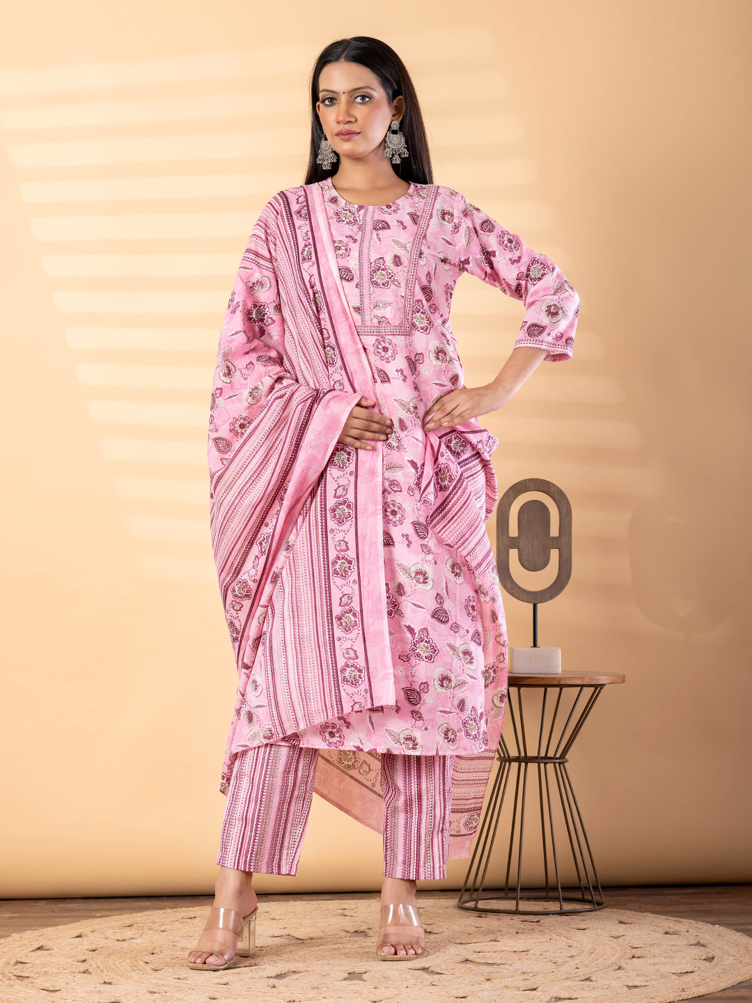 in Pink and Majenta with Printed work