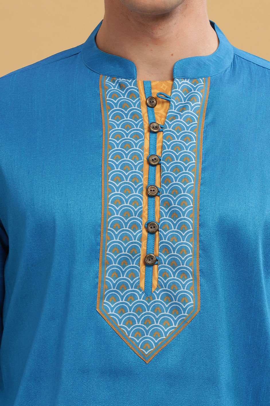 Cotton Party Wear Kurta in Black and Grey with Printed work