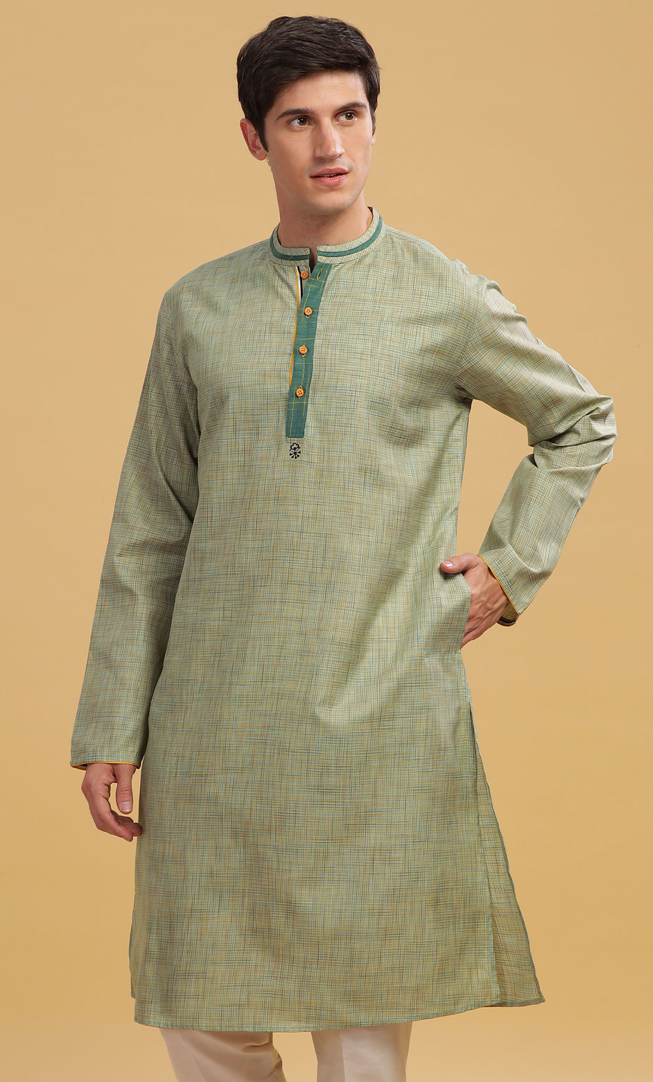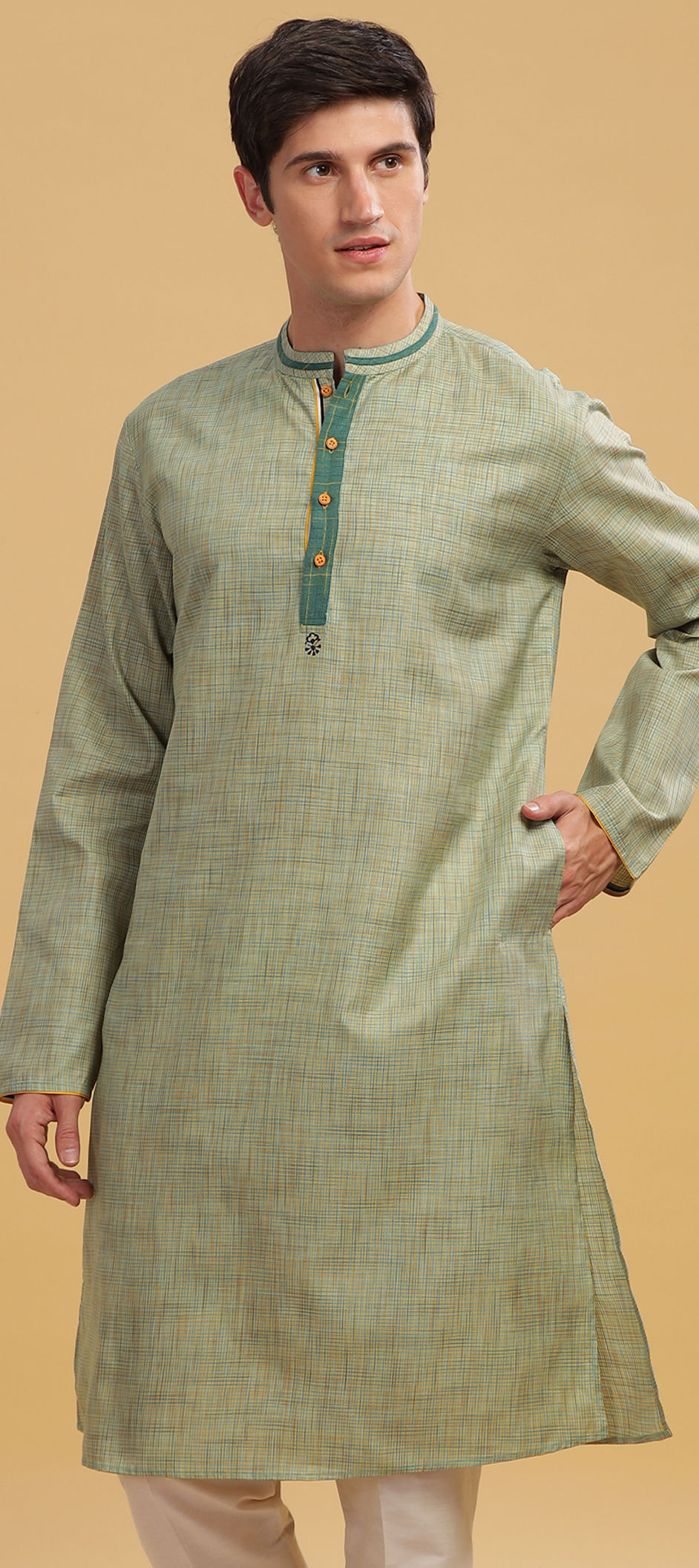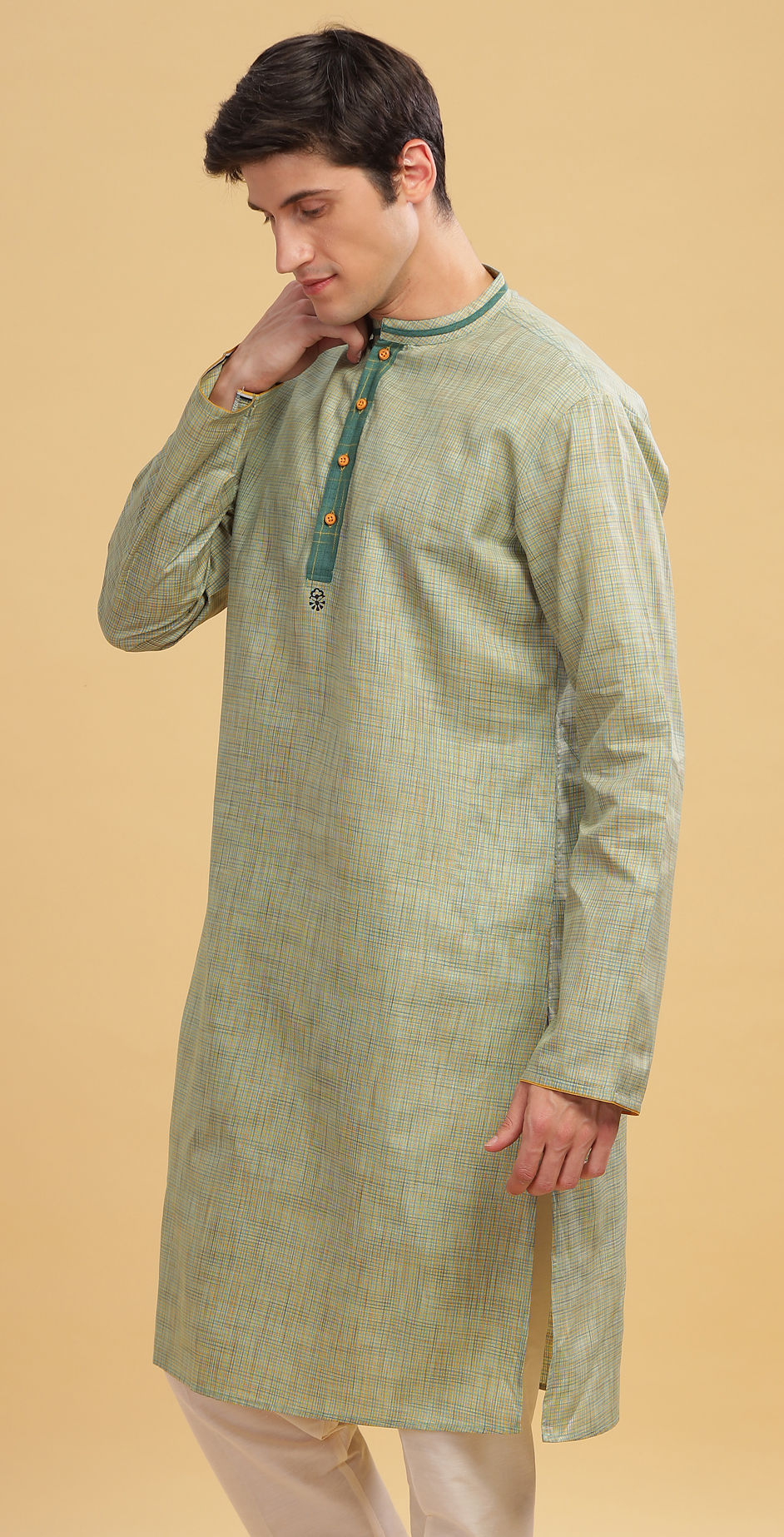 Cotton Party Wear Kurta in Beige and Brown with Printed work
