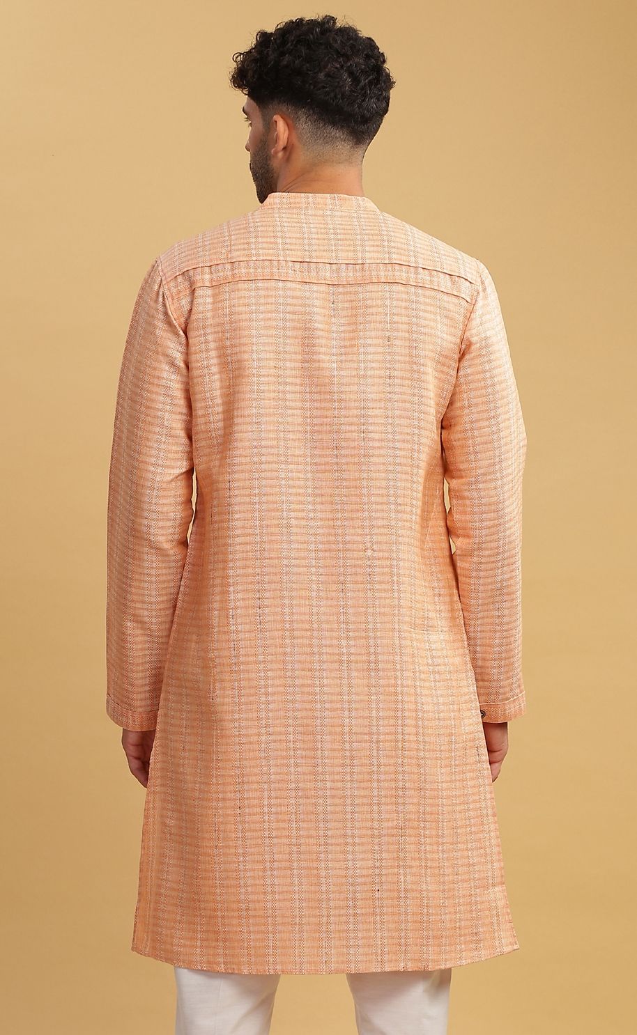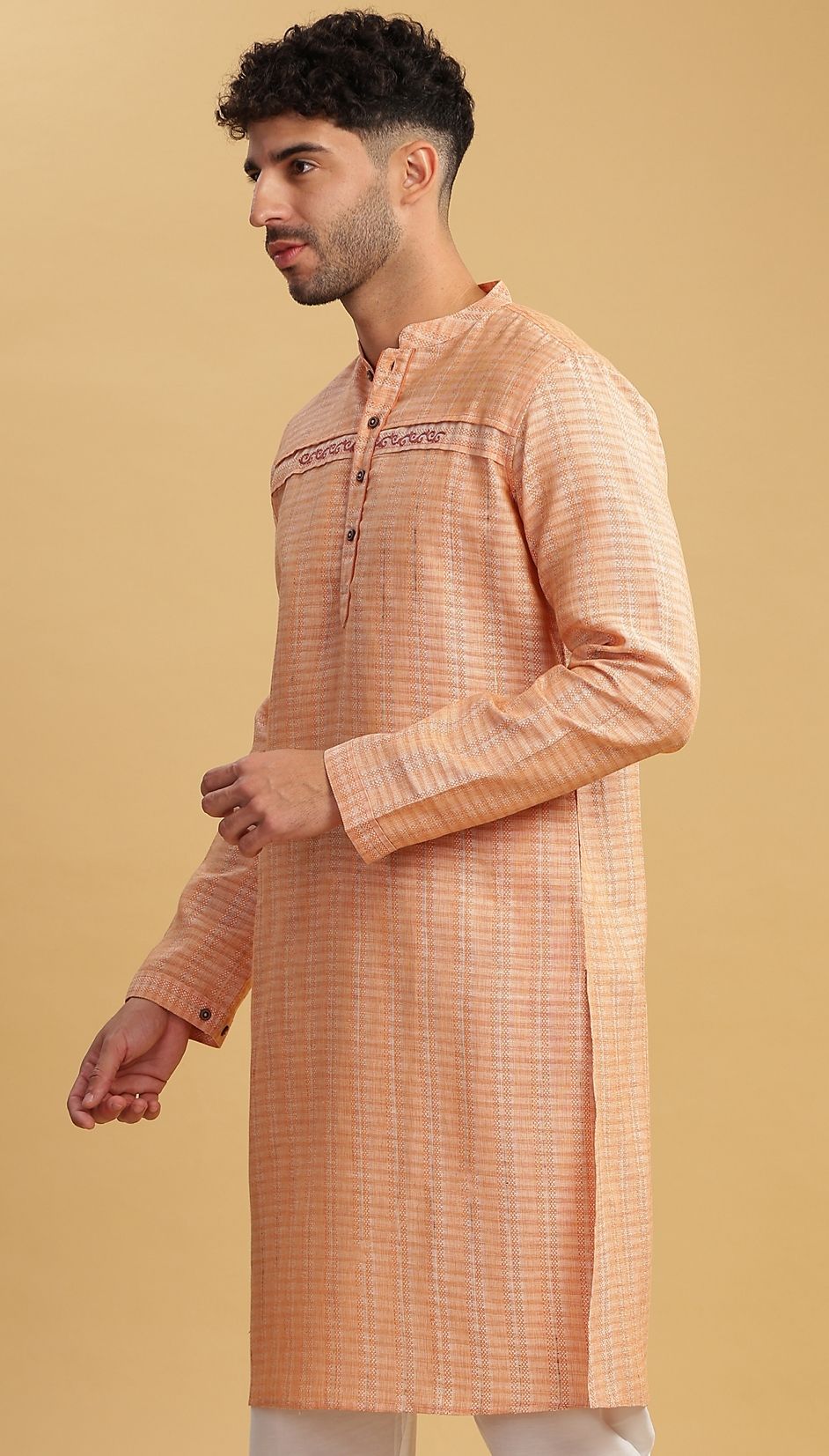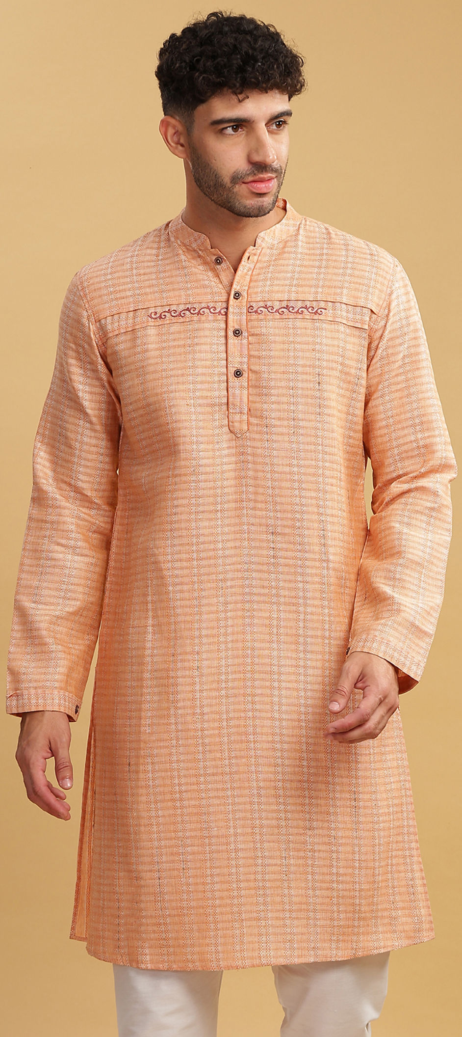 Cotton Party Wear Kurta in Beige and Brown with Printed work
