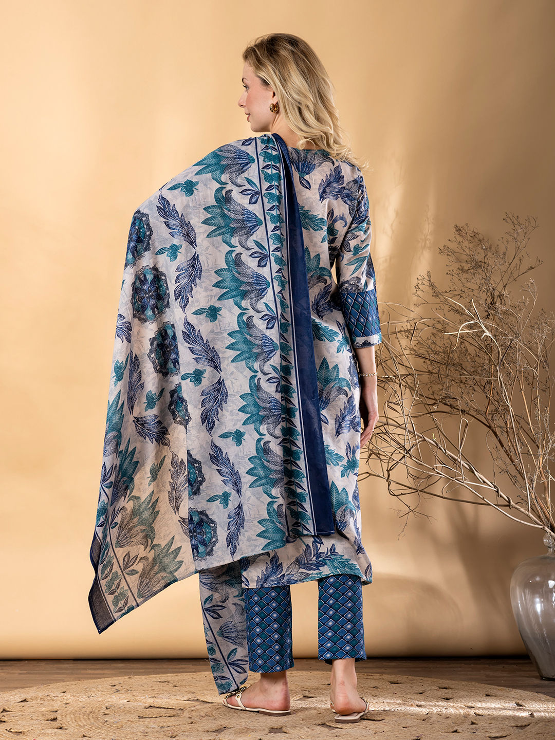 in Blue with Printed work