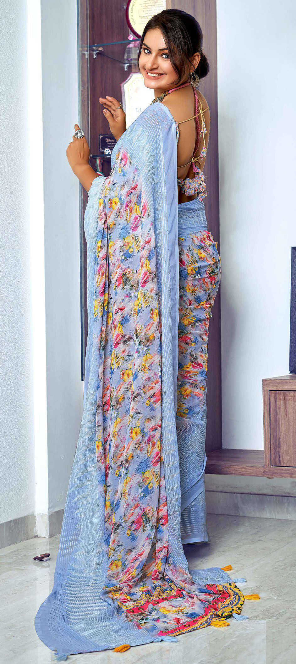 Multicolor color Saree in Polyester Silk fabric with Digital Print, Floral work