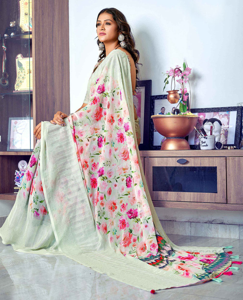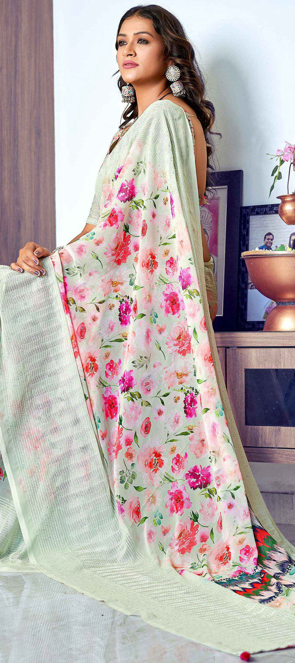 Multicolor color Saree in Polyester Silk fabric with Digital Print, Floral work