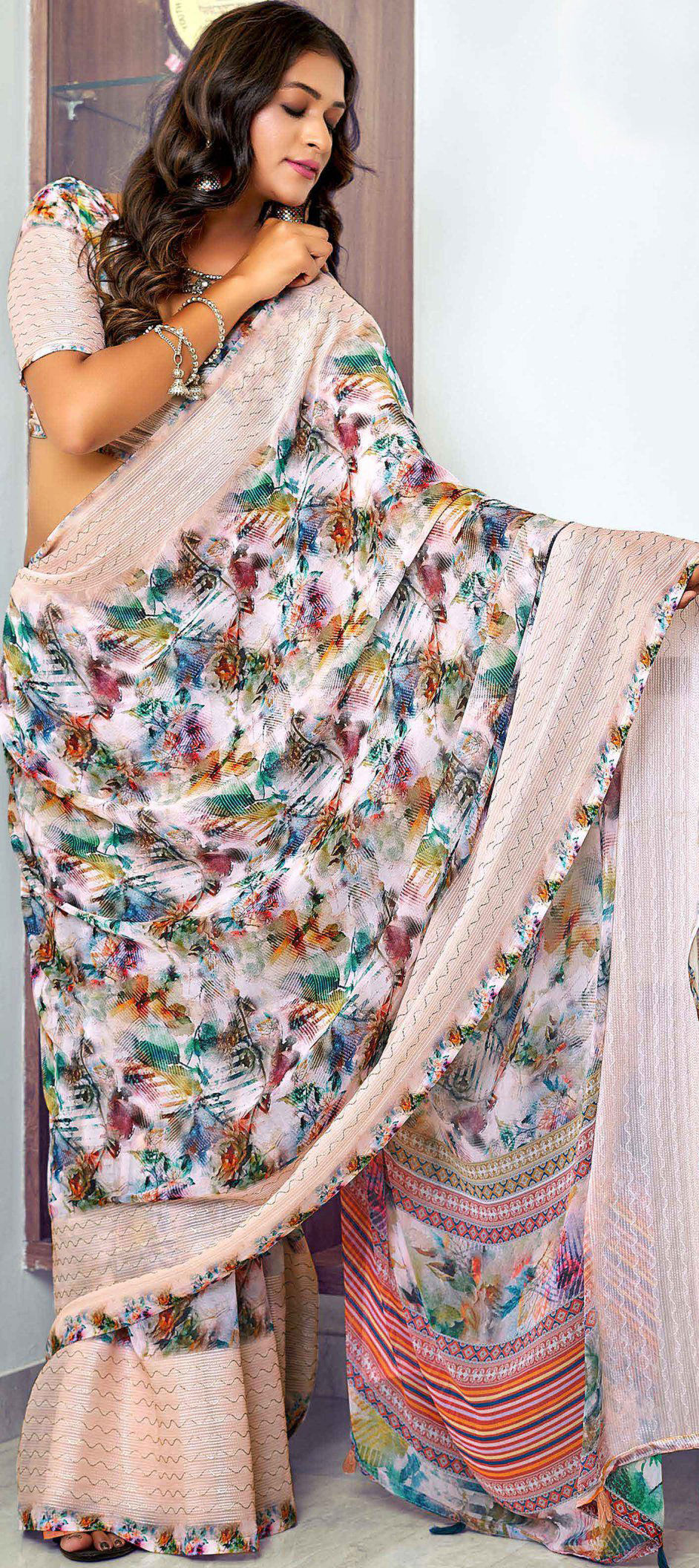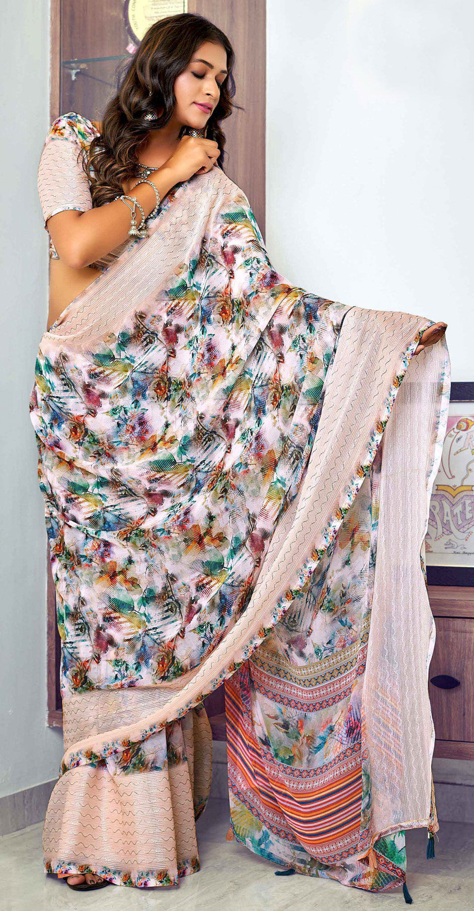 Multicolor color Saree in Polyester Silk fabric with Digital Print, Floral work