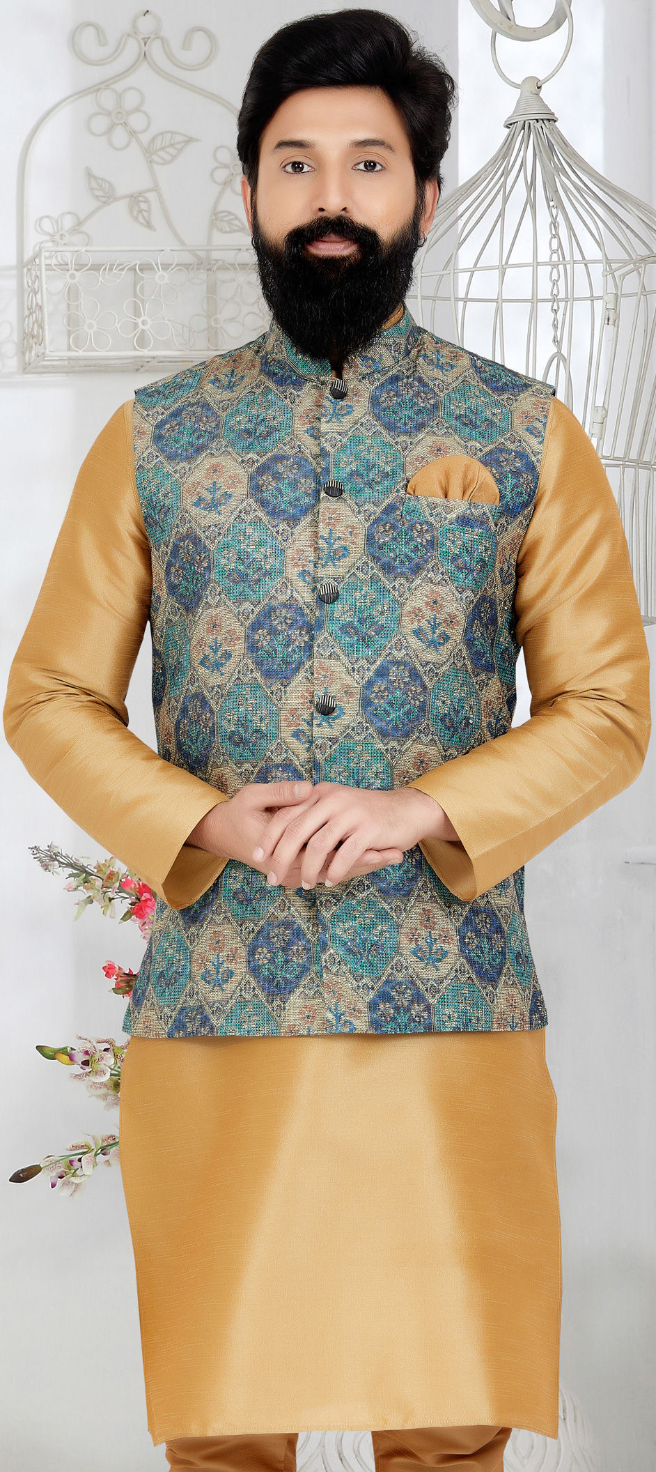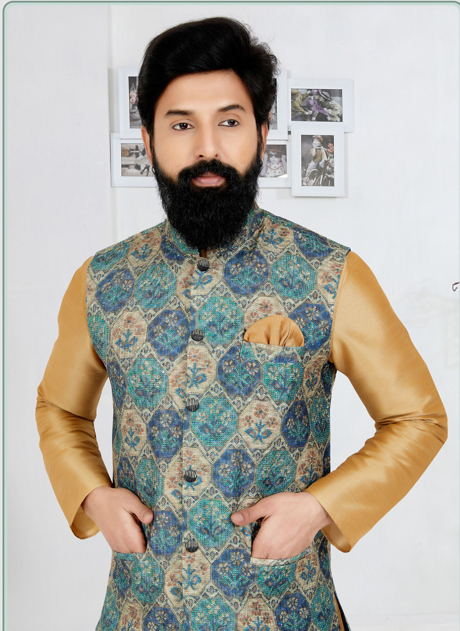 Multicolor color Nehru Jacket in Polyester Silk fabric with Printed work