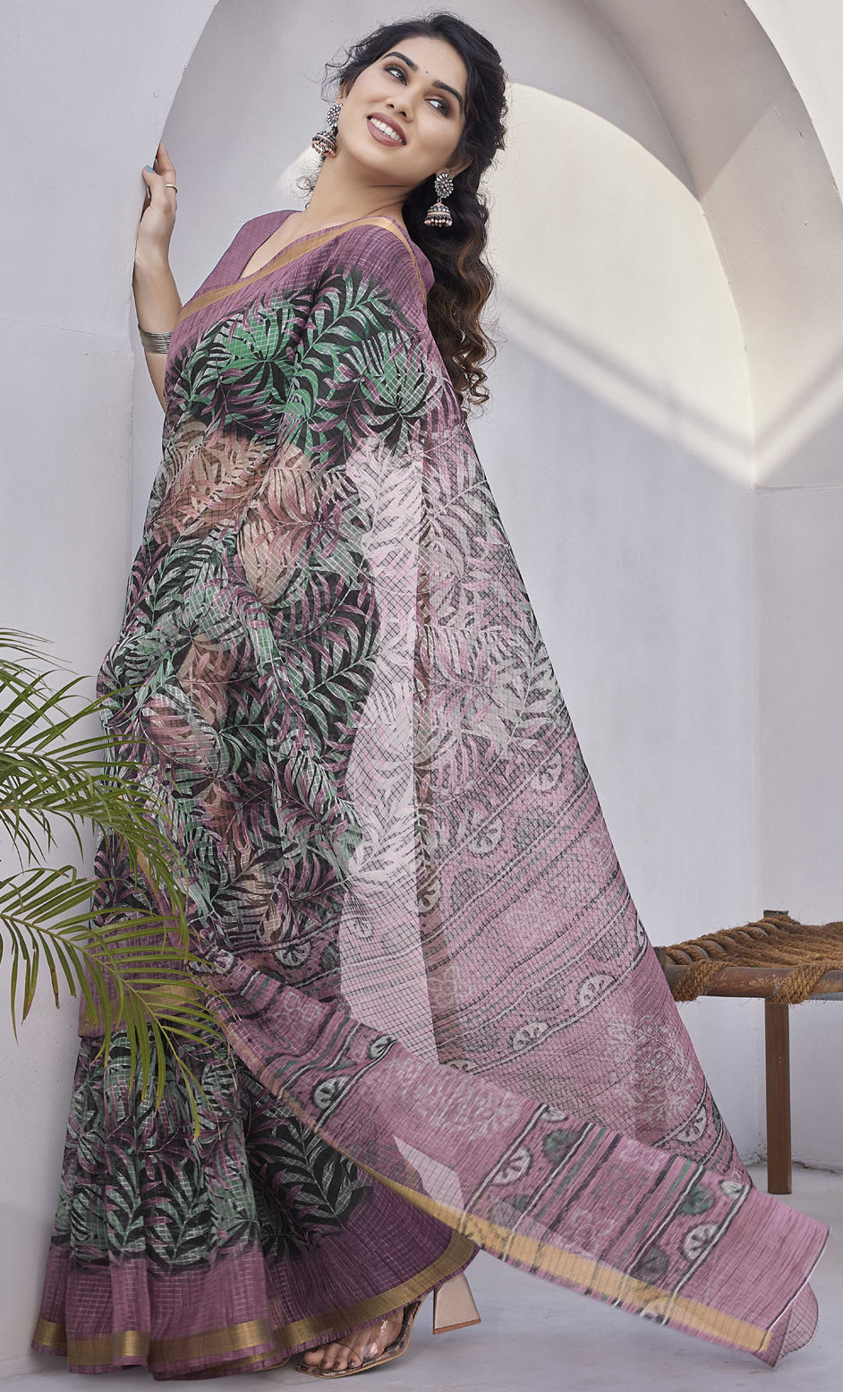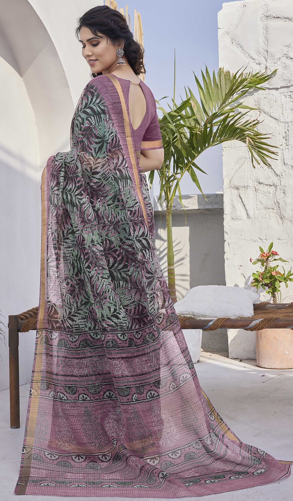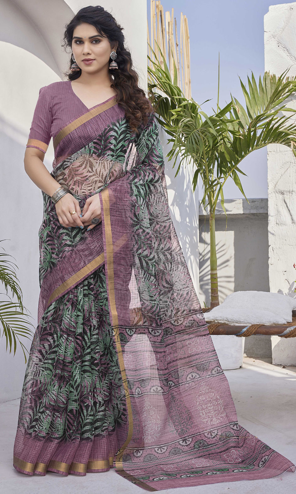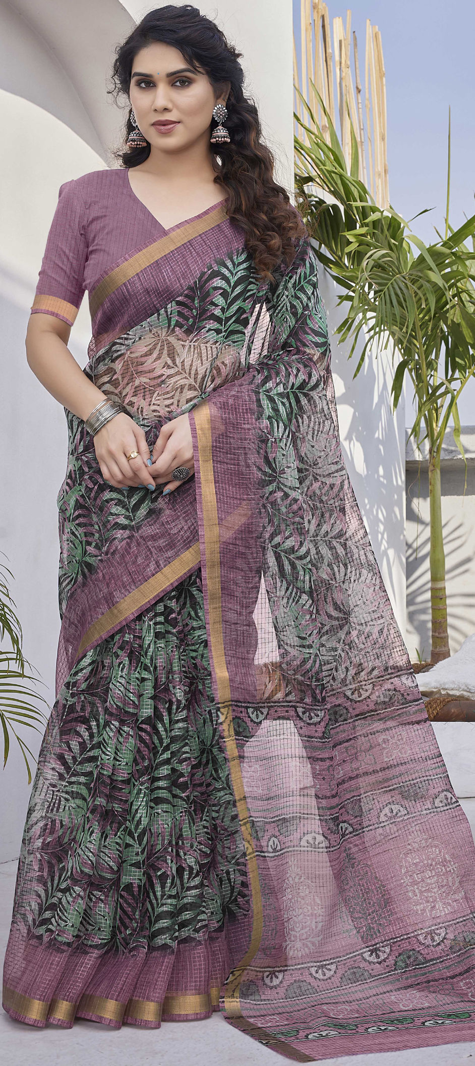 Kota Doria Silk Traditional Saree in Pink and Majenta with Printed work