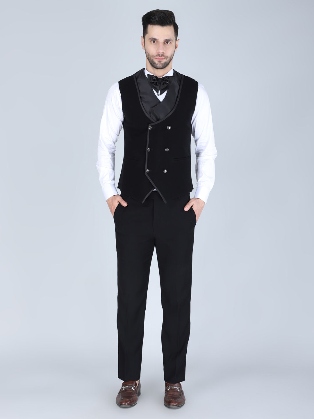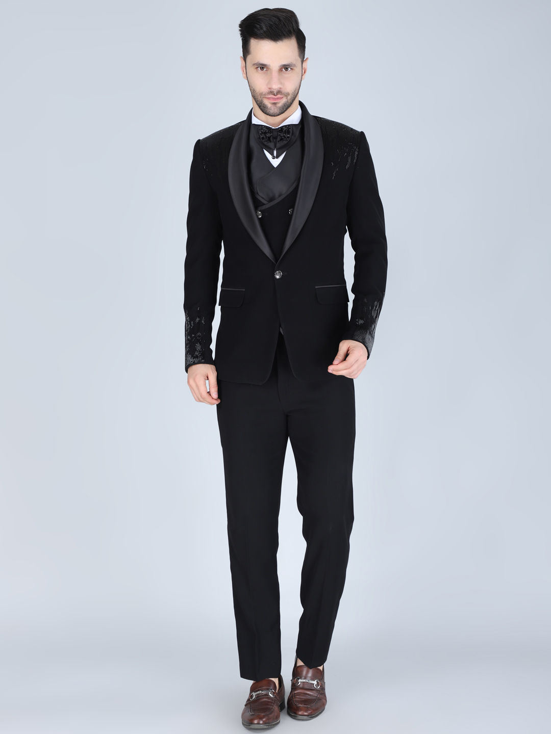 Velvet Wedding Tuxedo in Black and Grey with Embroidered work