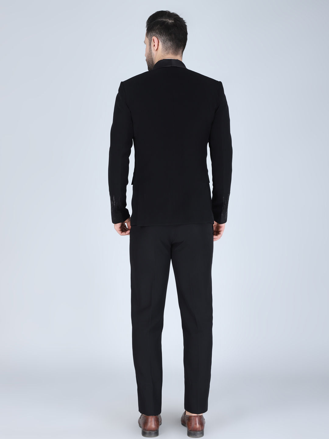 Black and Grey color Tuxedo in Cotton, Polyester Silk fabric with Embroidered work