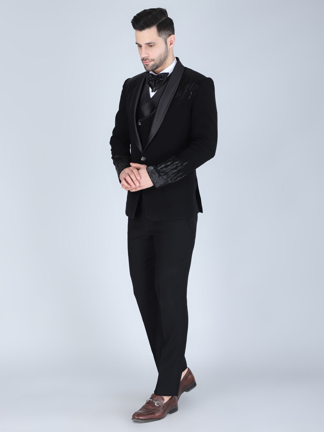 Cotton Reception Tuxedo in Black and Grey with Embroidered work