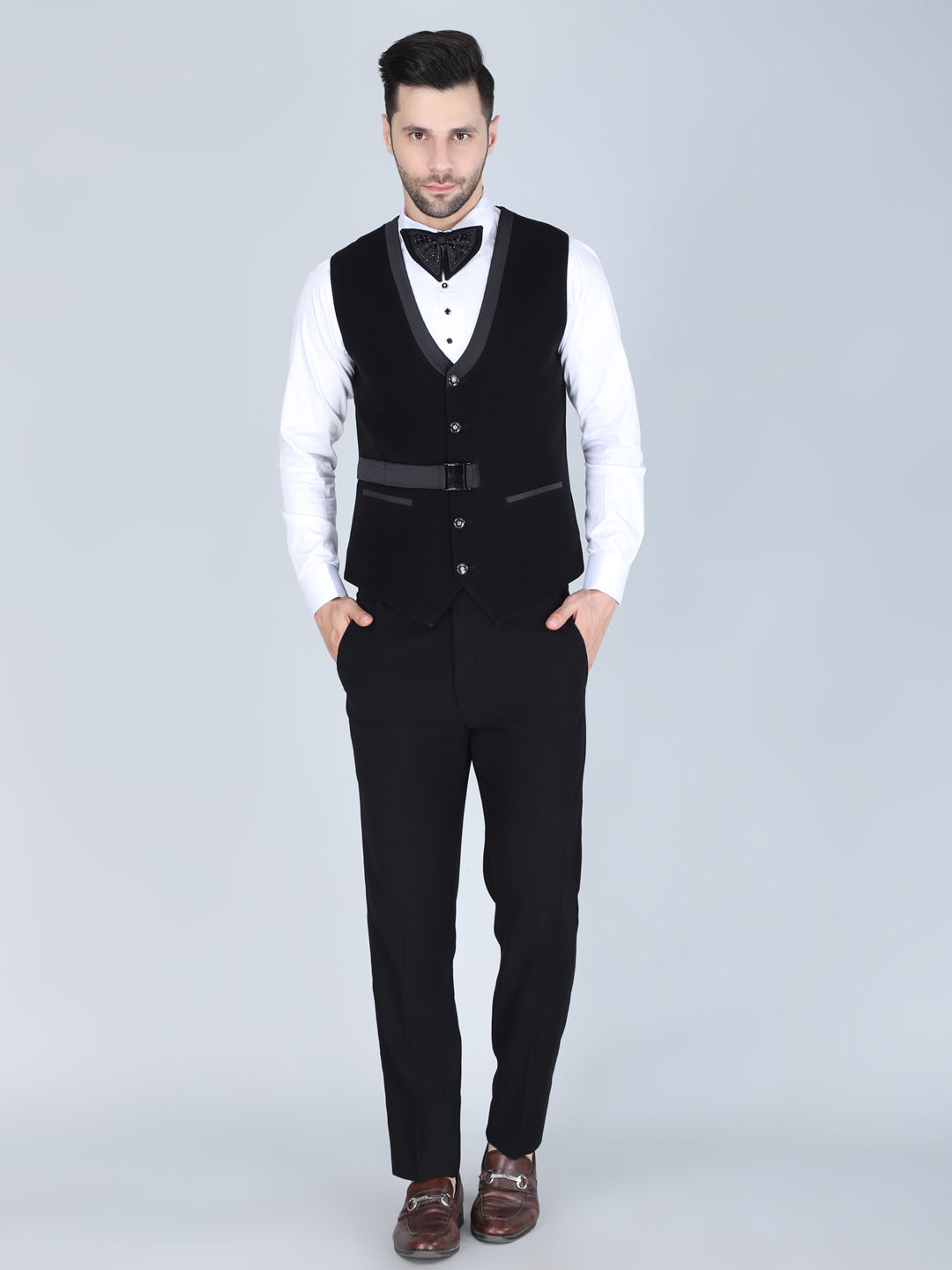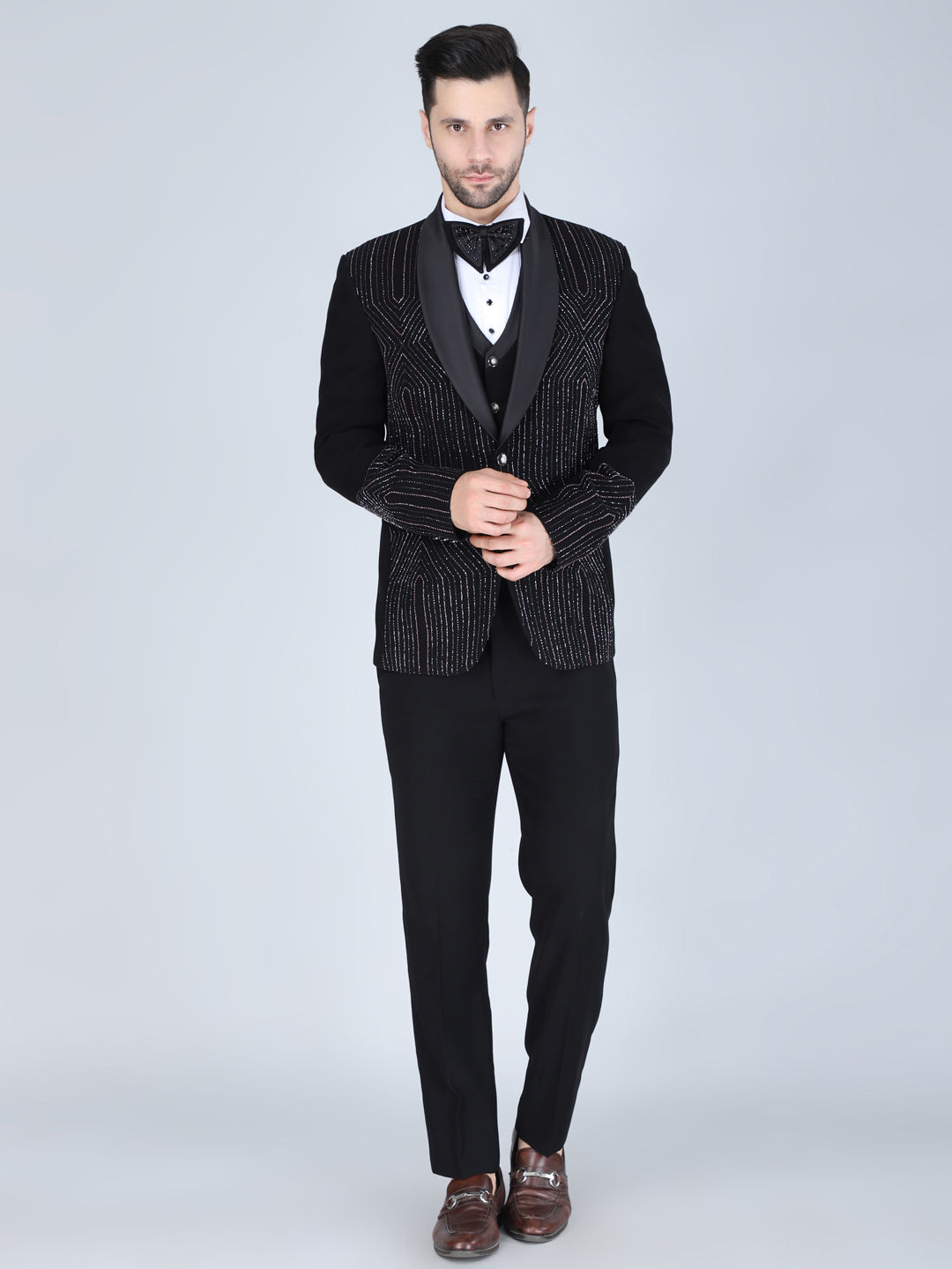 Velvet Wedding Tuxedo in Black and Grey with Embroidered work