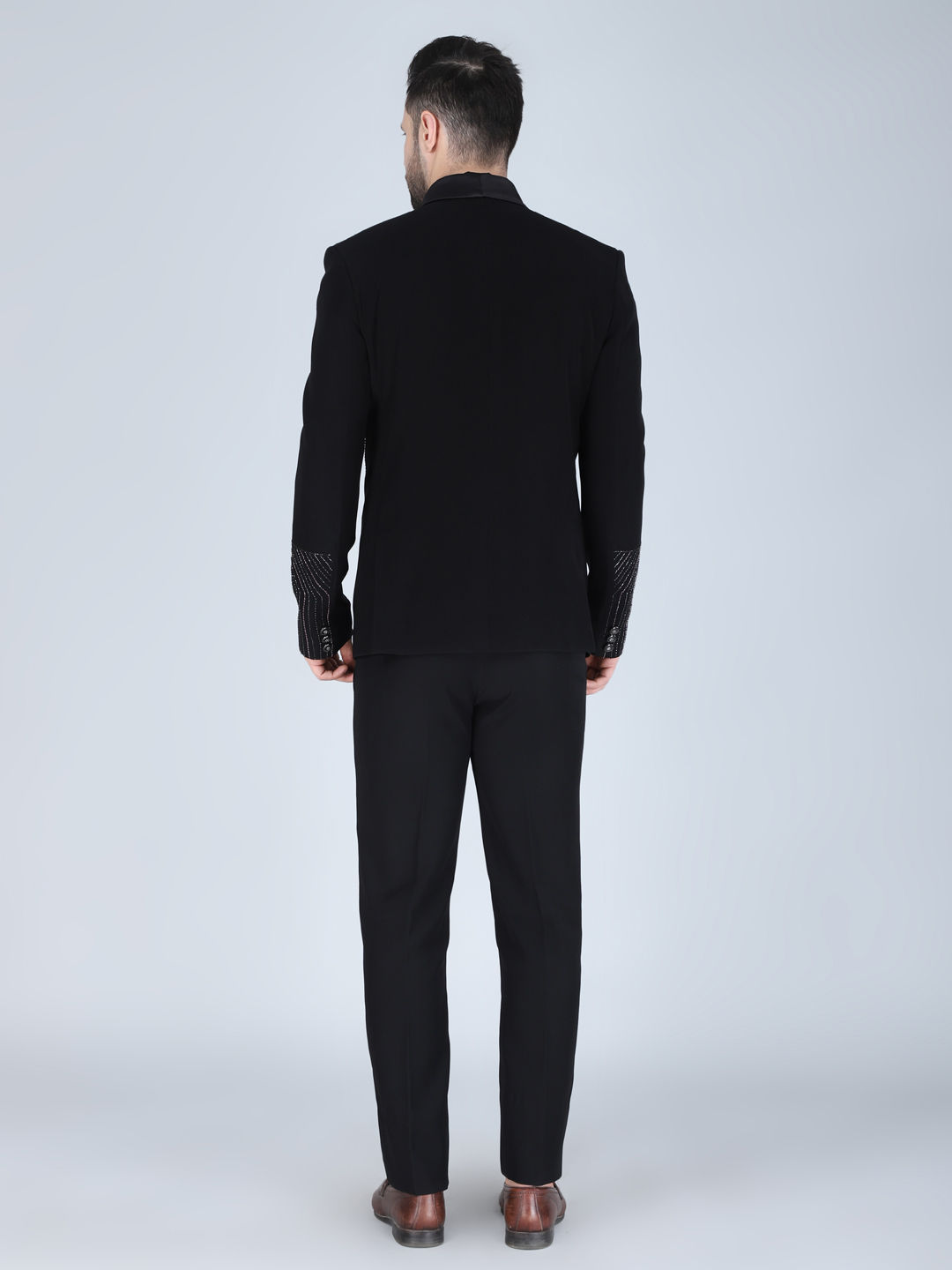 Black and Grey color Tuxedo in Cotton, Polyester Silk fabric with Embroidered work