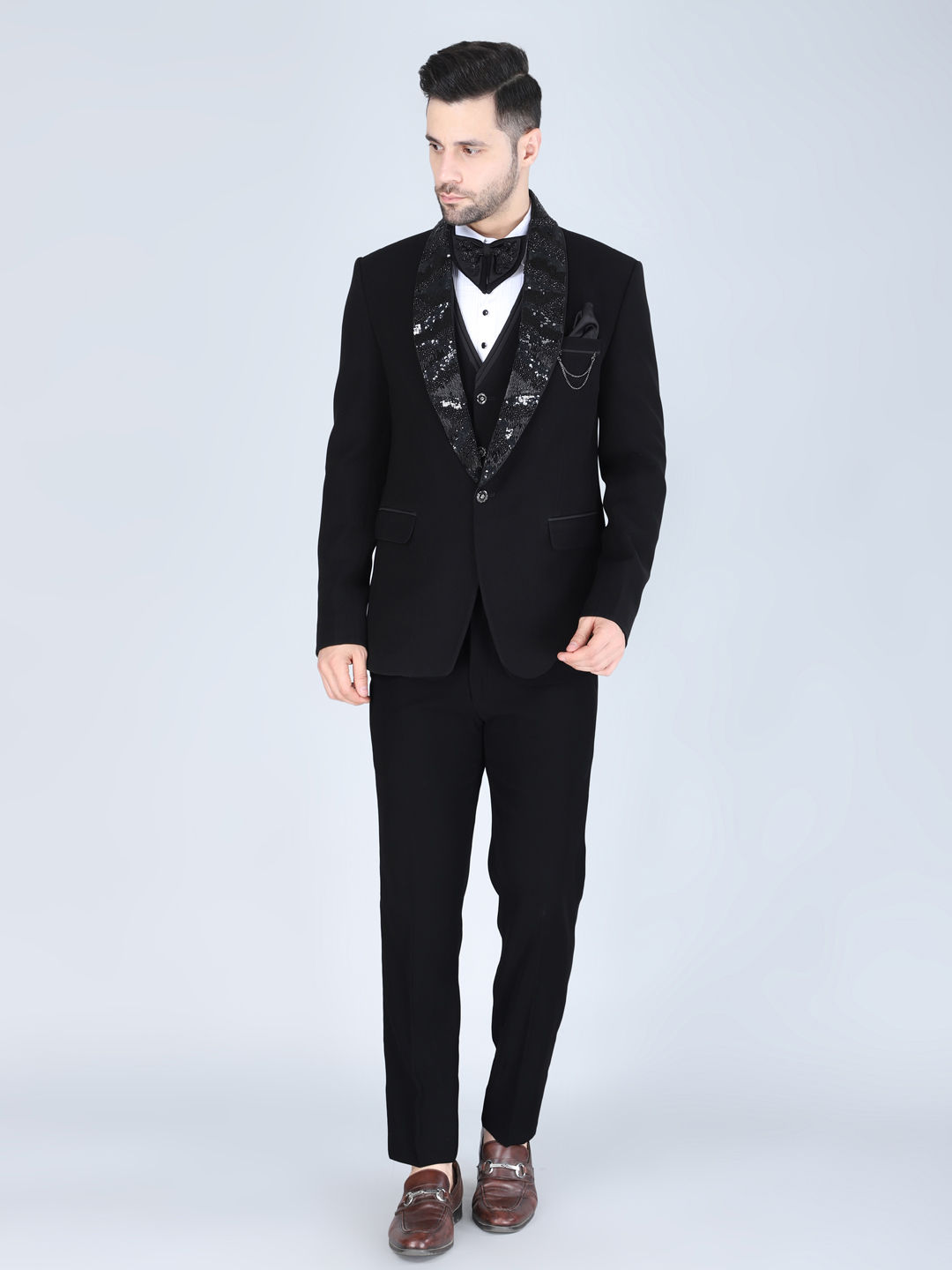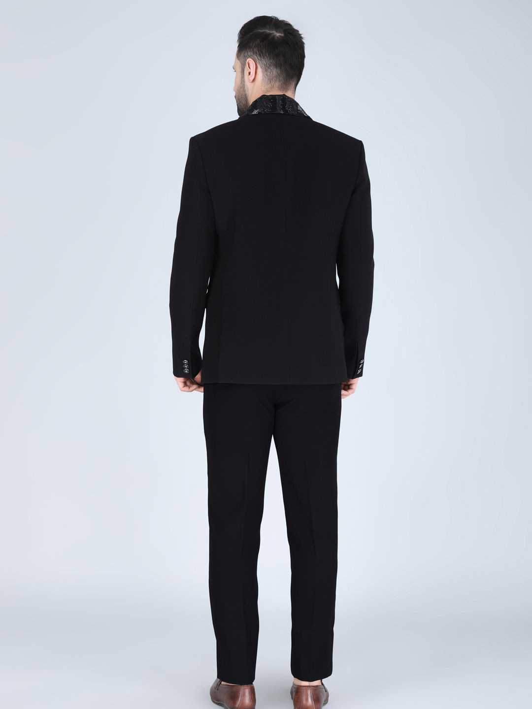 Black and Grey color Tuxedo in Cotton, Polyester Silk fabric with Embroidered work