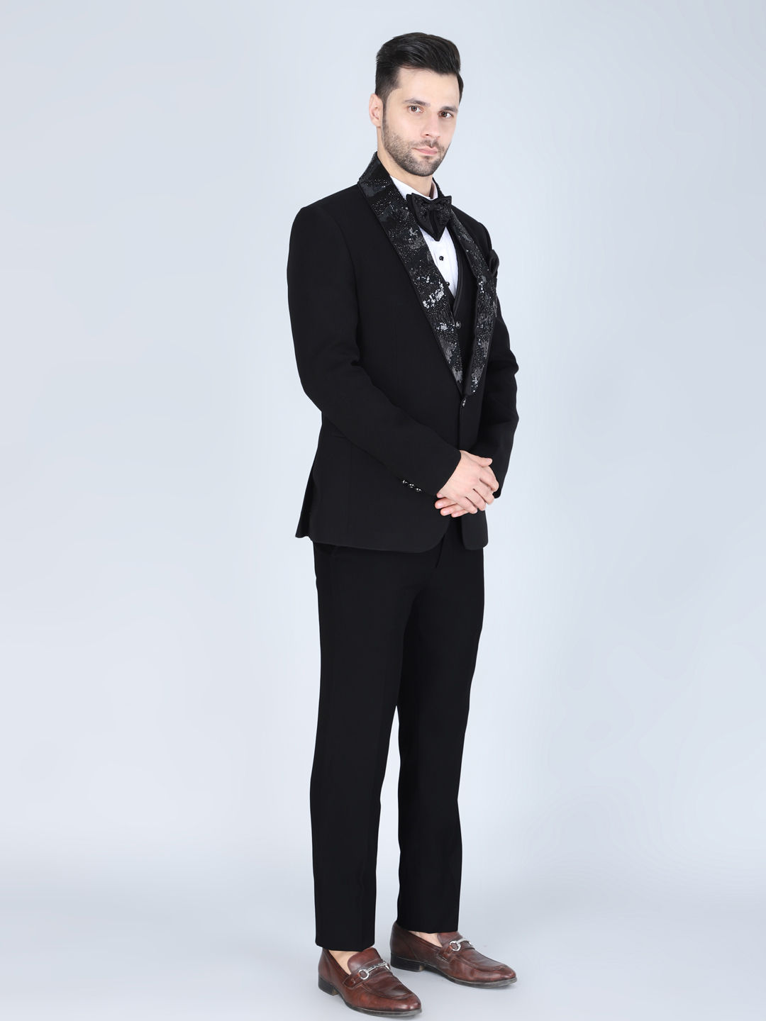 Cotton Reception Tuxedo in Black and Grey with Embroidered work