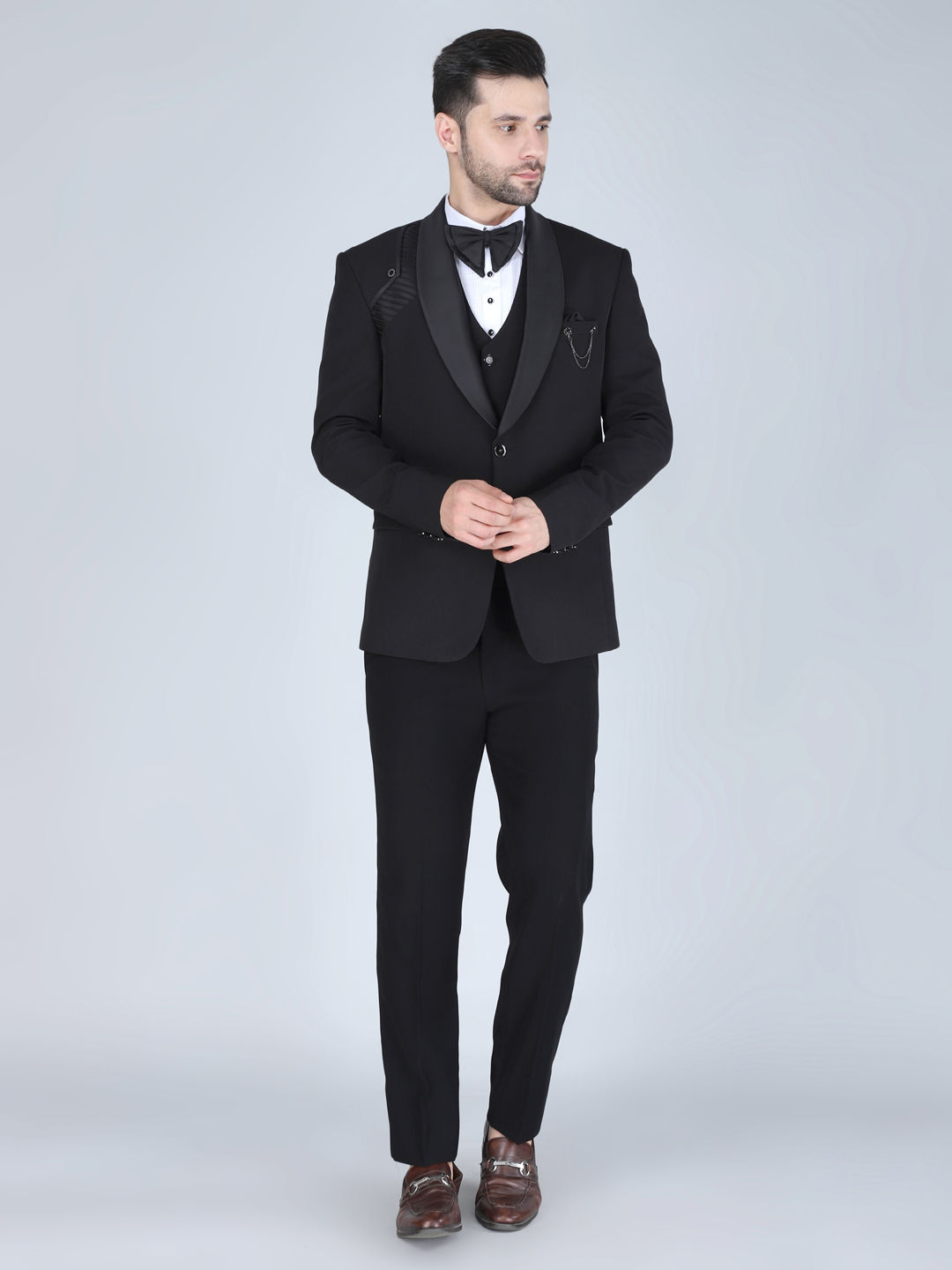 Cotton Reception Tuxedo in Black and Grey with Embroidered work