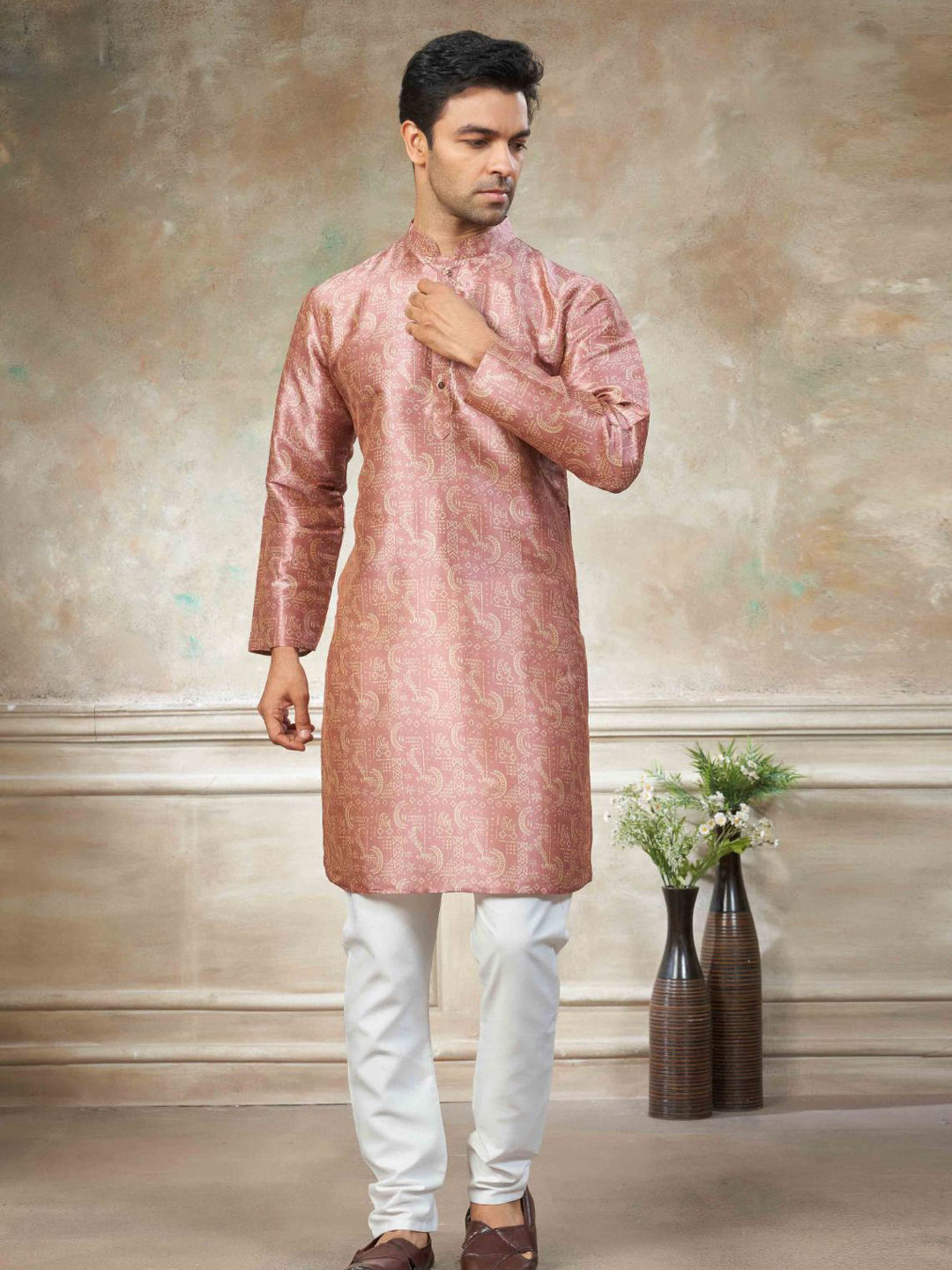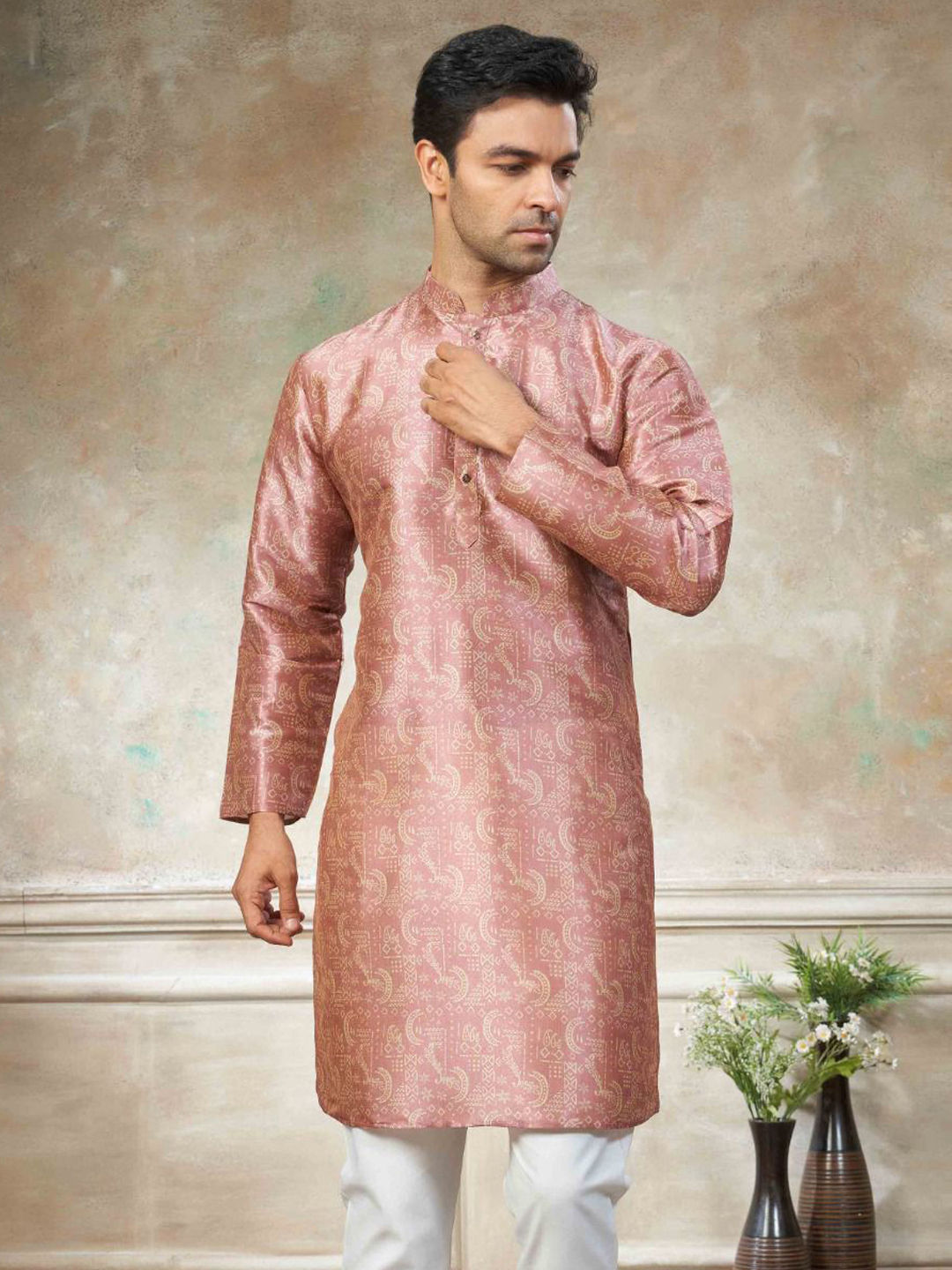 Pink and Majenta color Kurta Pyjamas in Premium Silk fabric with Digital Print work