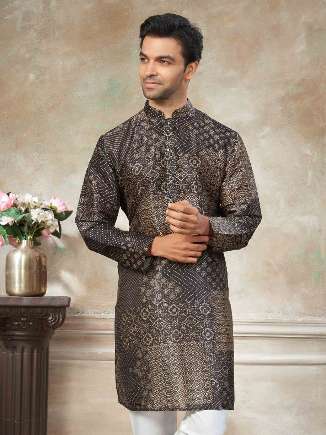 in Beige and Brown with Digital Print work