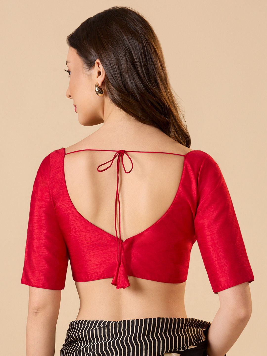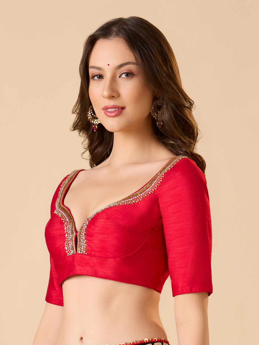 Tissue Festive Blouse in Red and Maroon with Sequence work